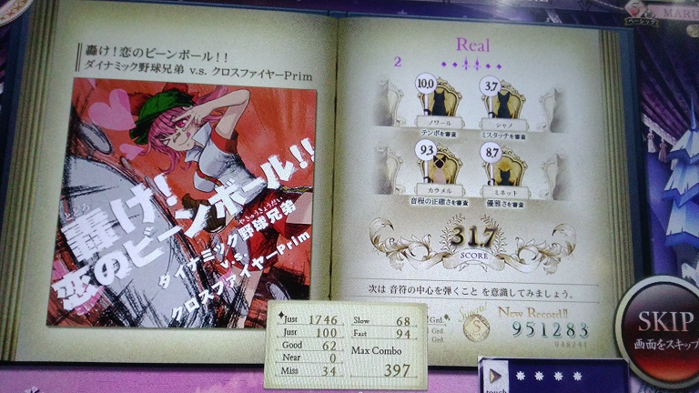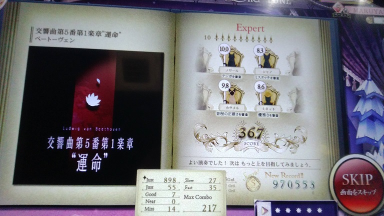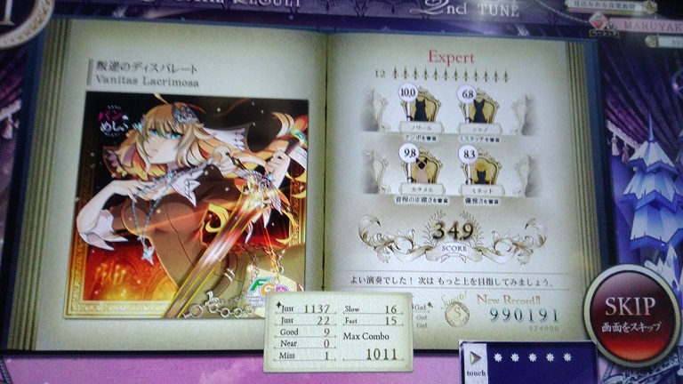 Lv12で990k取れた!Gradeも両方とも120点もらえておいしい。けっこうミスタッチ多かったけど気にせず食らいついたのがよかったかな。