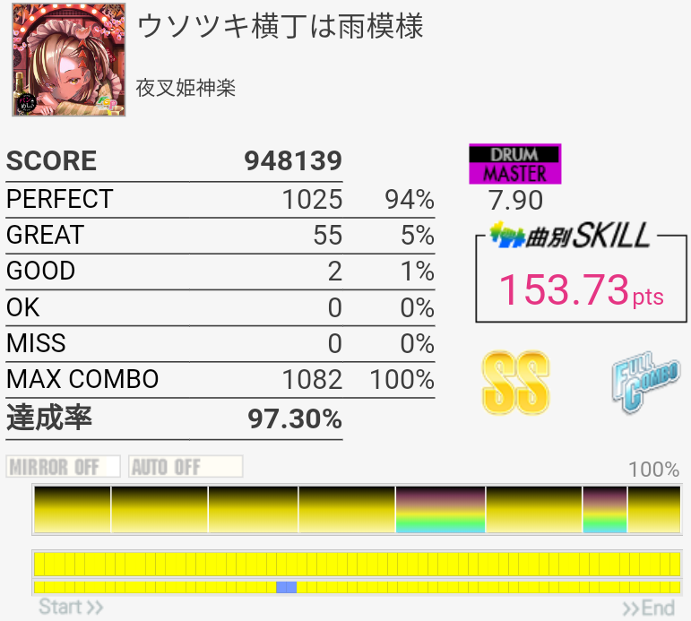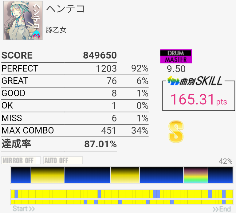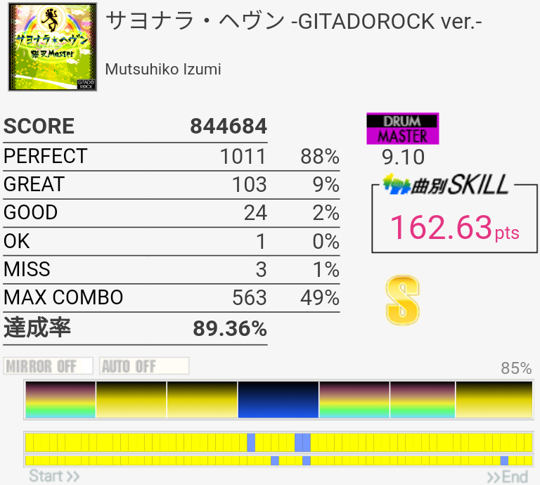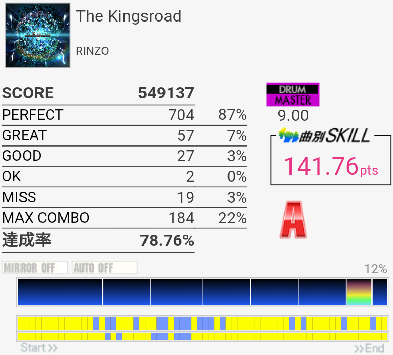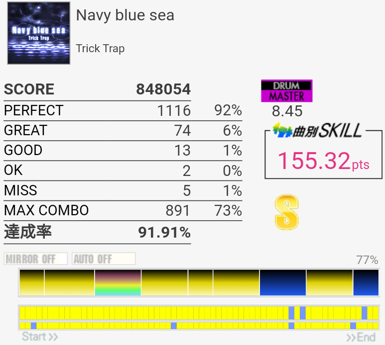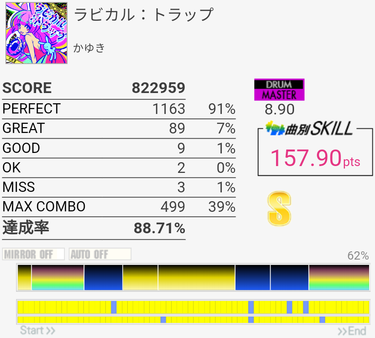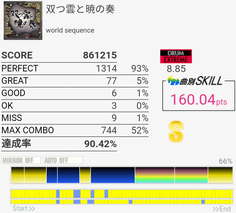 フレーズ的には新記録。三連CYどーしても叩けない。