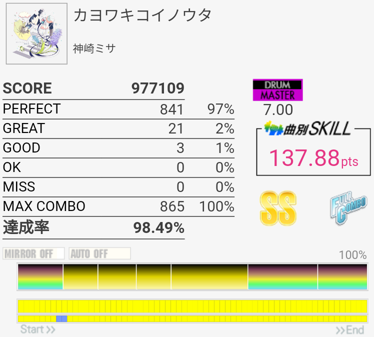 SS取得。デケデデンッデンッのところはもう一生叩けそうにないので許してくれ。