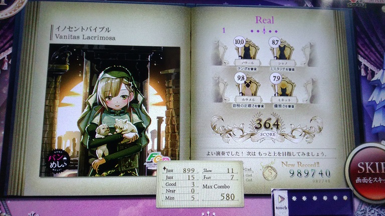 なんとか解禁間に合った。そんなに速くないし片手階段の練習にいい感じの譜面かな?サビらへんで「><」みたいな形になってるところが難しかった気がする。なんのこっちゃ。