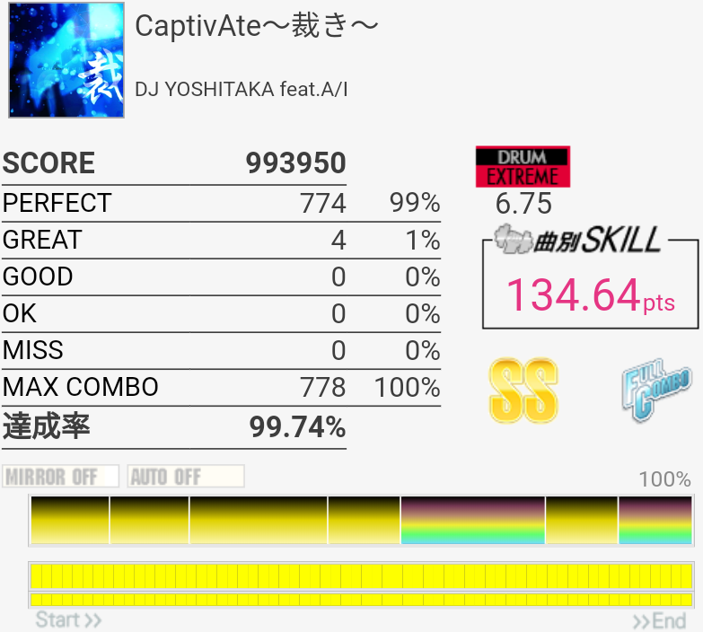 ついに簡単な曲でもパフェ率が死んだのでやめた。LPが全部GREATだった。