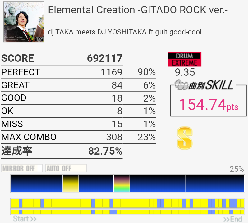 Hot枠初の170点。一回目のタム回しも意外とシングルで回せる感が出てきた。何気に7フレーズ目終わりの裏バスがムズい。