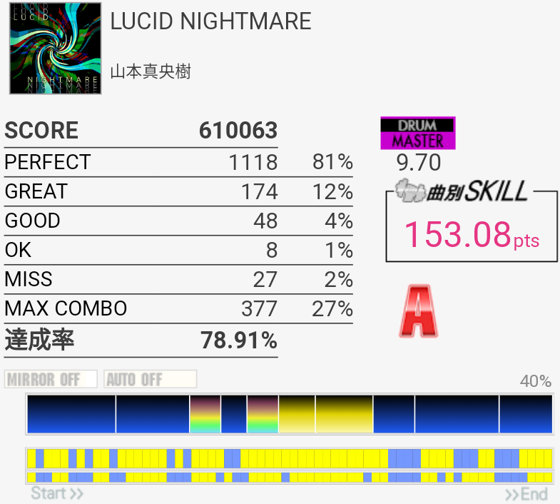 いつもの感じ。MASは最初からやる気ないんだけどEXTでSN連打残してるのが謎。左足残して手を16分までに間引くんじゃダメなのだろうか。