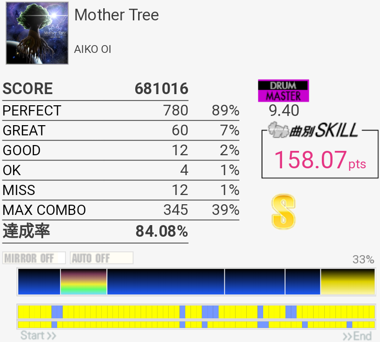 時間切れで選んじゃったやつ。S取れそう?どの難度値でもあんまりやってる感覚変わらないんだよなあ。