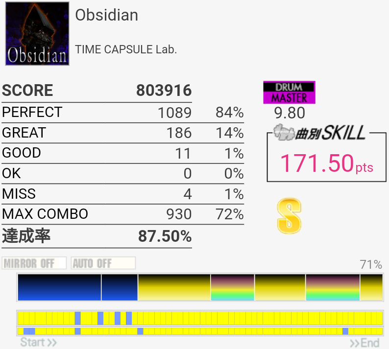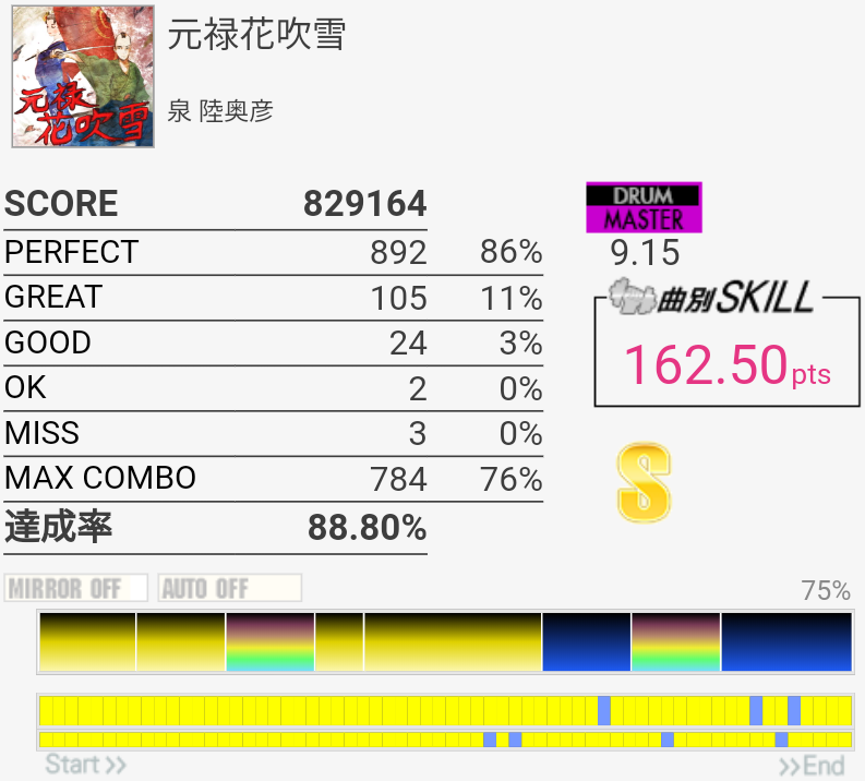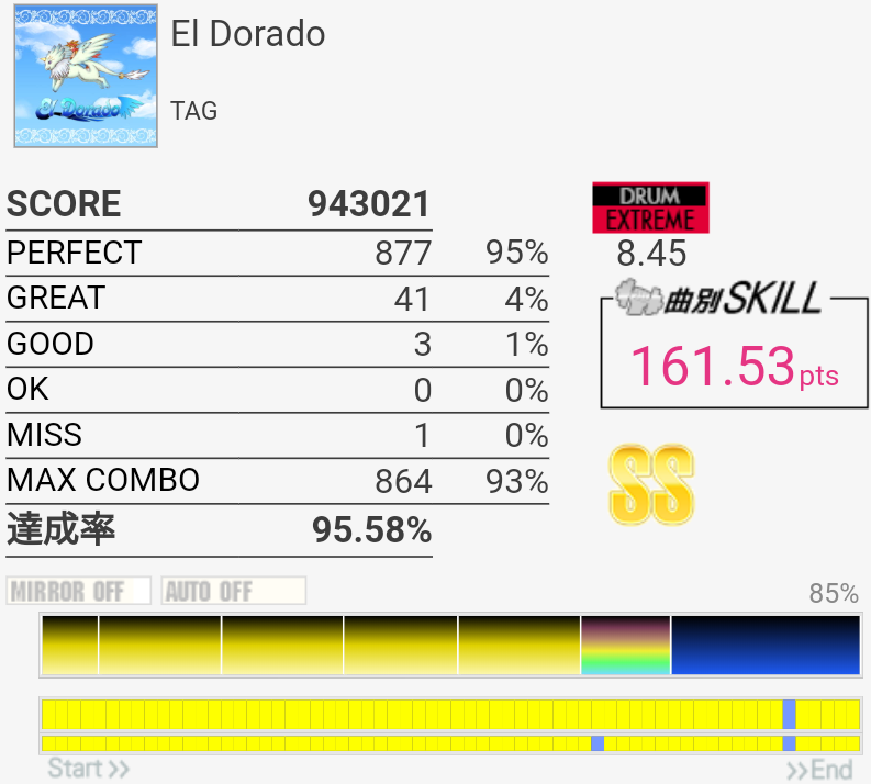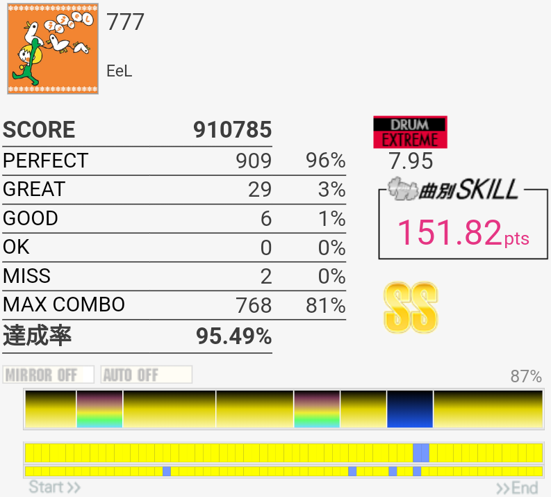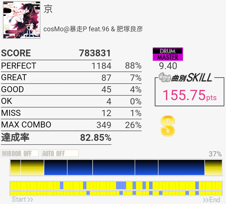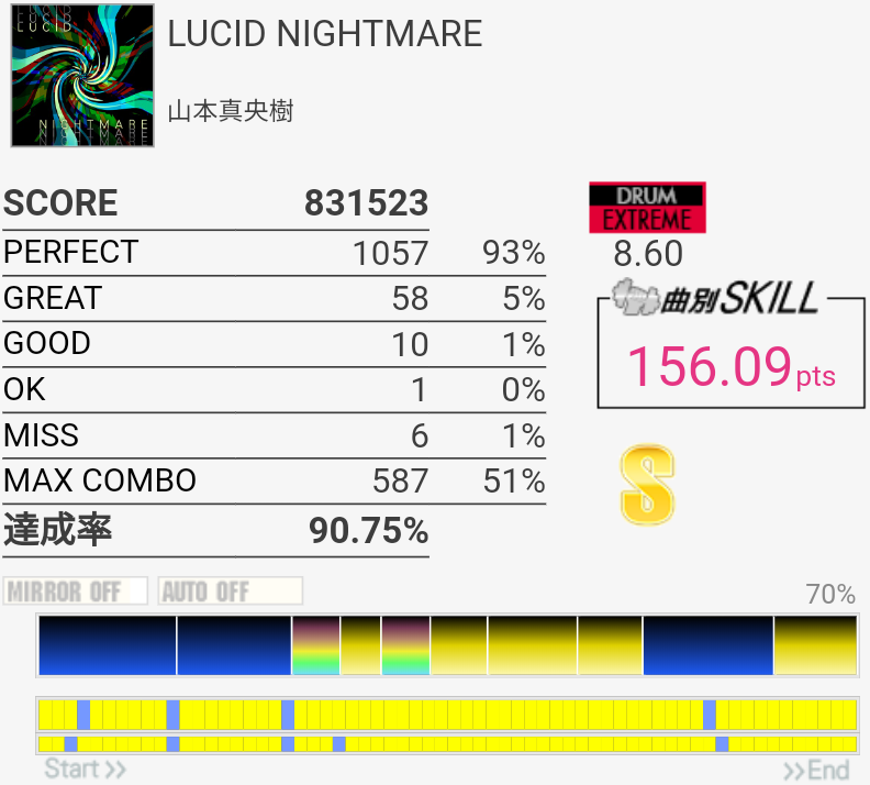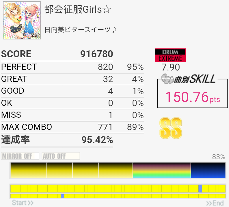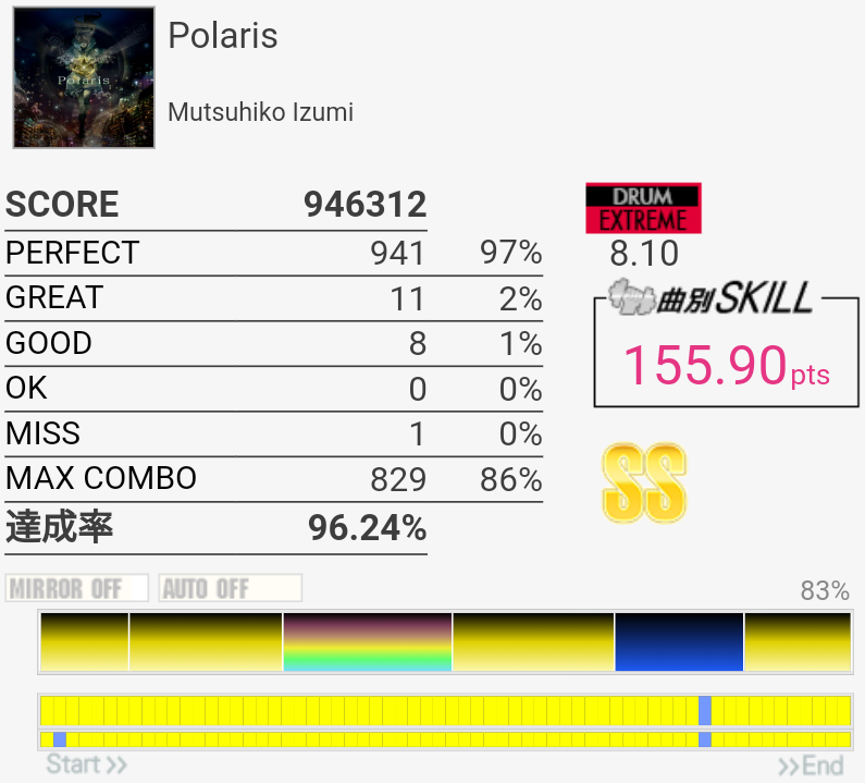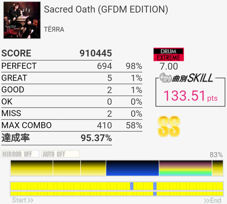 SS取得。イントロアウトロはHH+SN→LCが苦手……あと中盤の2回来るSNがこわい。