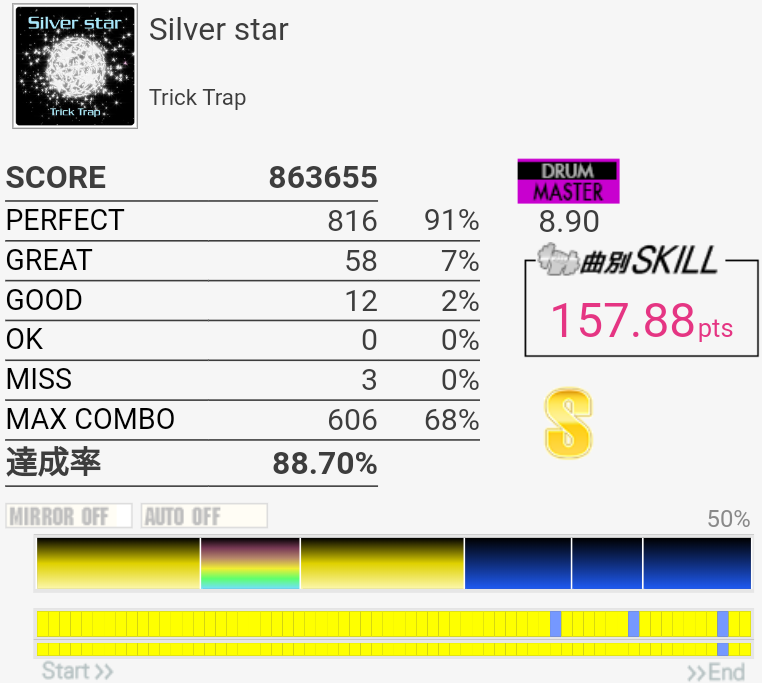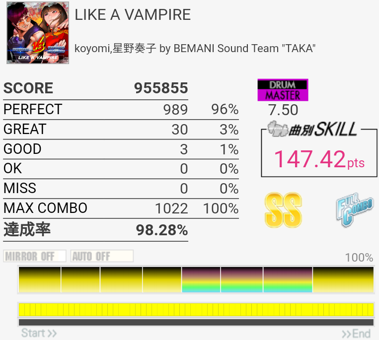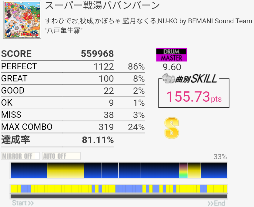 まあ……普段のwac譜面よりは良心的なんじゃないっすか。単純に速いうえにいちいちタム回しのパターンが違うのが超いやらしいけど。音楽的に変える必要性あるのかな?ゲーム的な理由だったらつまらんからやめてほしいな。