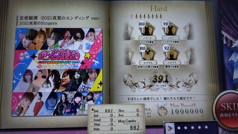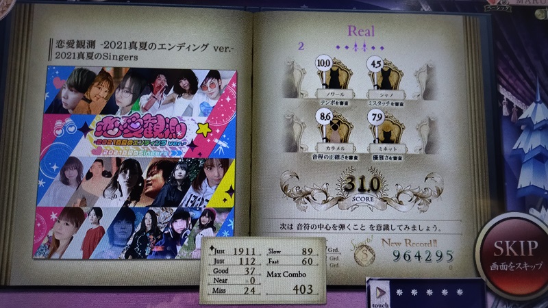 初見でHardをPianistic、Expertフルコン。ExpertはLv10ってほど簡単でもなかったような……でも繋がってるから簡単なのか。Realは知らなーい。