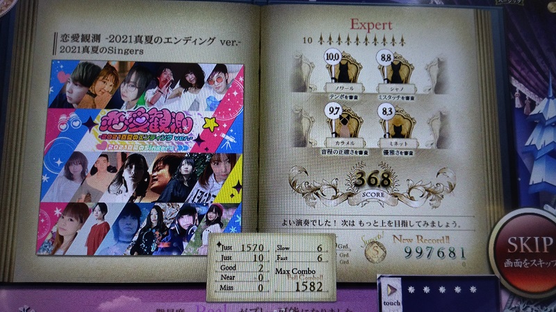 なんかフルコン。そんなミスタッチ少なかったか?って感じだが。余裕なくて優雅さが落ちちゃったのが残念。