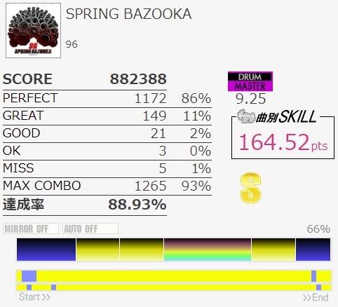 なんか惜しい!2、3フレーズ目のパフェ率が低すぎてダメ。CYのパターンが変わるとたぶん足が遅れちゃってるんだよな。最初はともかく最後のSNよくわかんないんだけどてきとう連打じゃダメか。