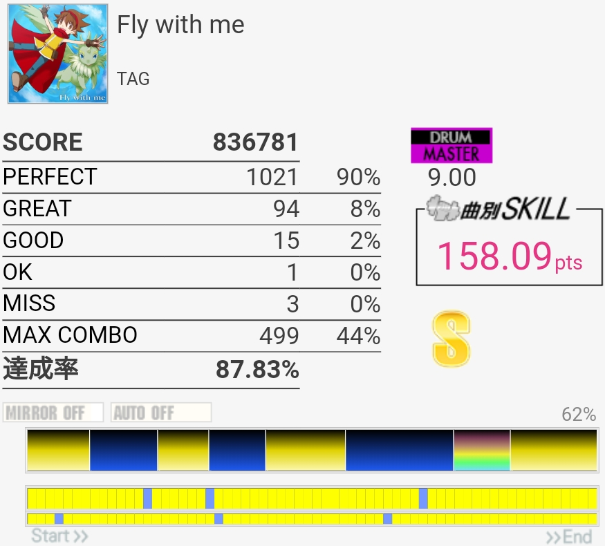 適当に選んだらなんか繋がった。この難度値だと達成率98%くらいほしいけど……。