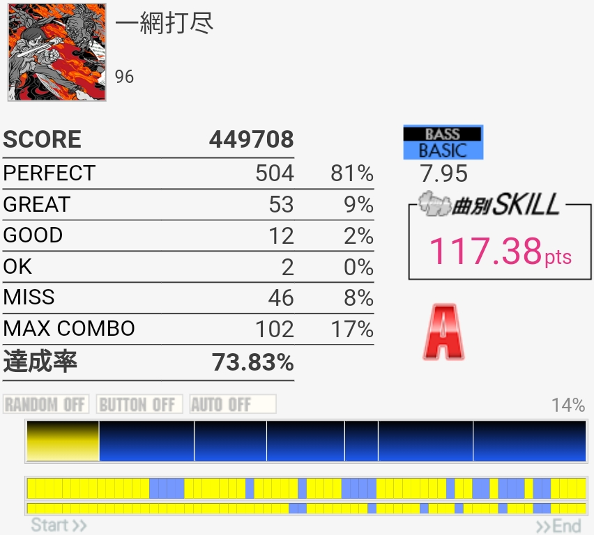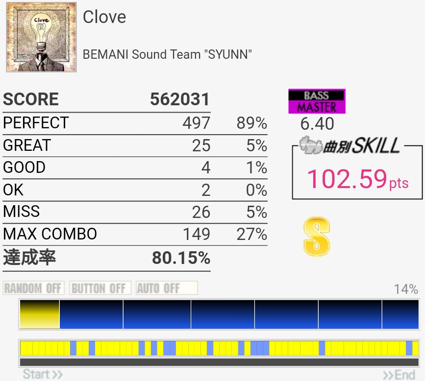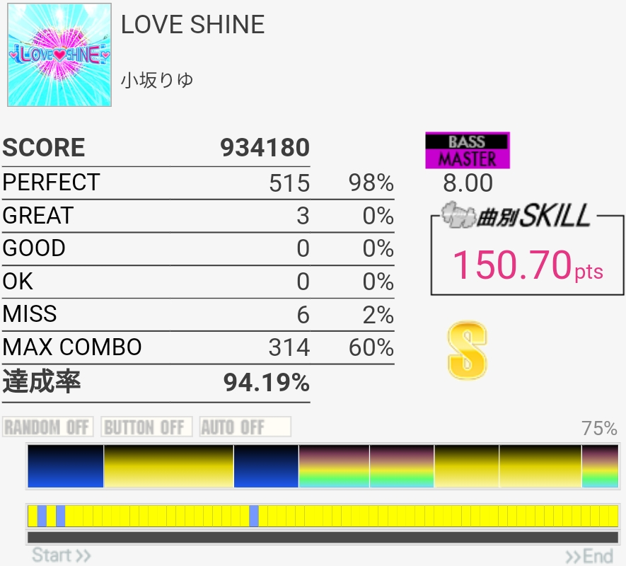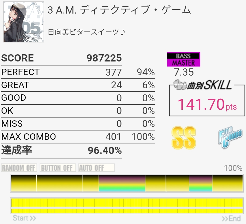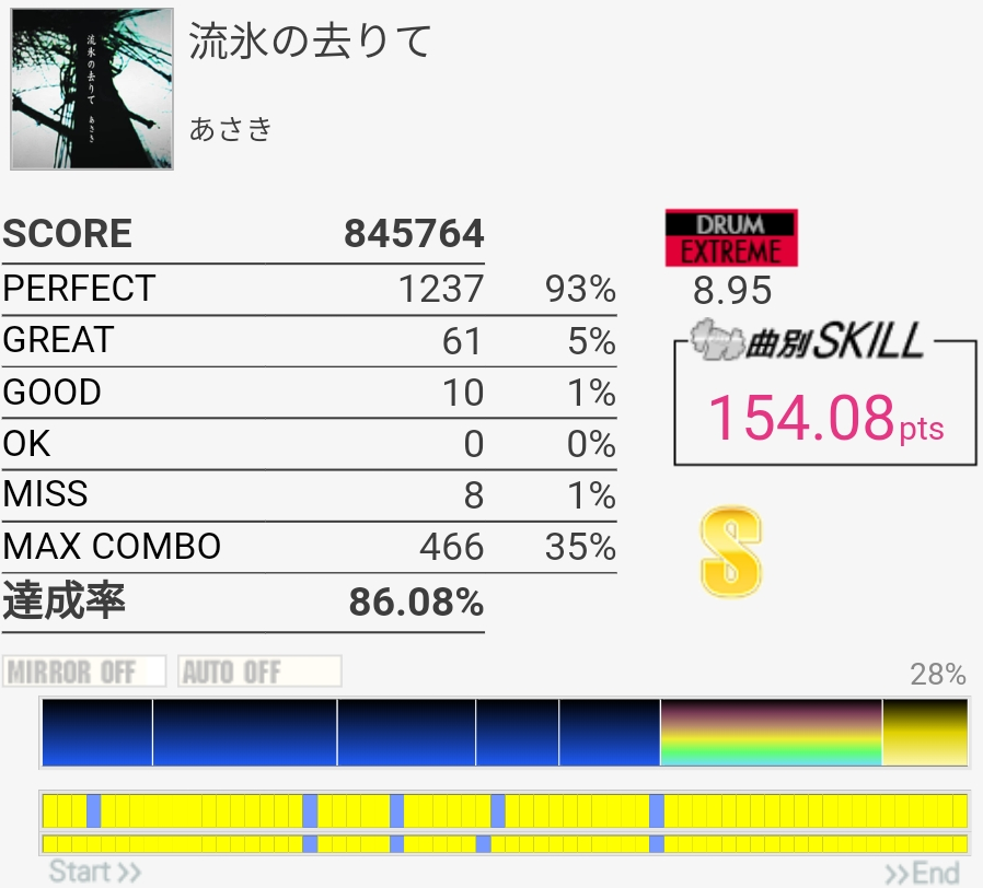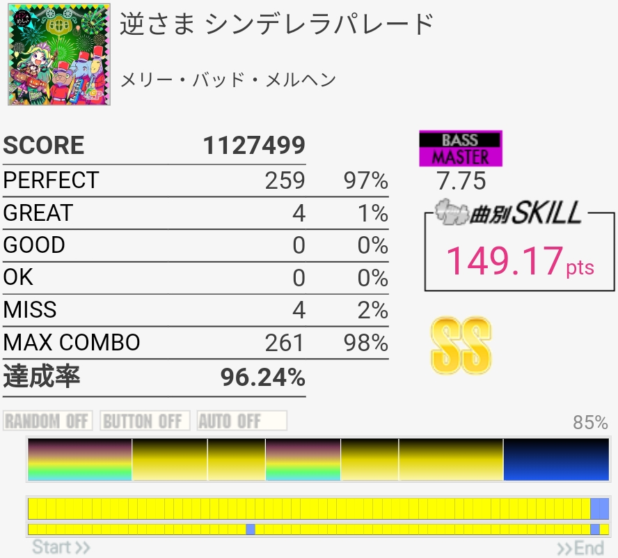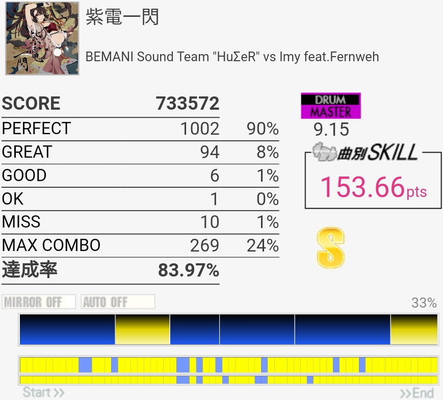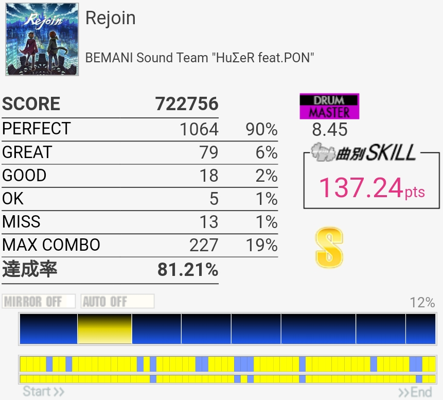 SS取得。3フレーズ目終わりや最終フレーズの16分をちゃんとオルタで取れるようになっててびっくり。