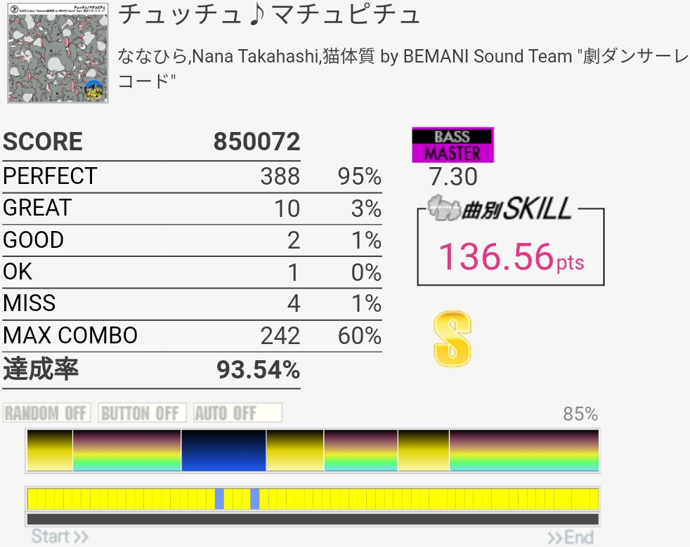 まずパフェ率を全然出せないんだよなあ。フュージョン?は拍がなんかヌルっとしてる。
