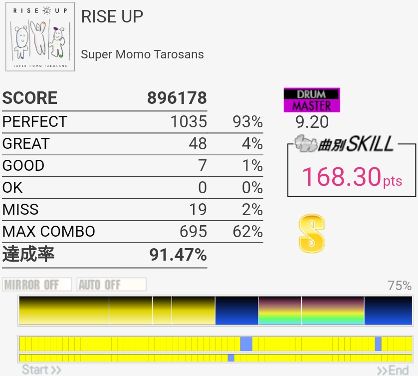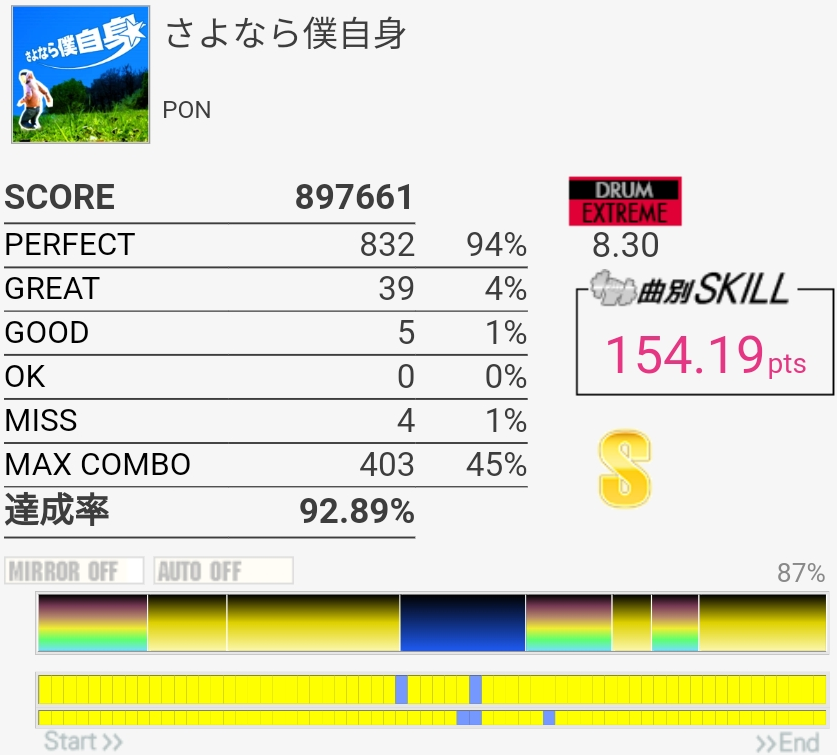 4フレーズ目の最初でSNが謎反応した。どちらにしろ5フレーズ目との境目でミスるから変わらないのだけれど。
