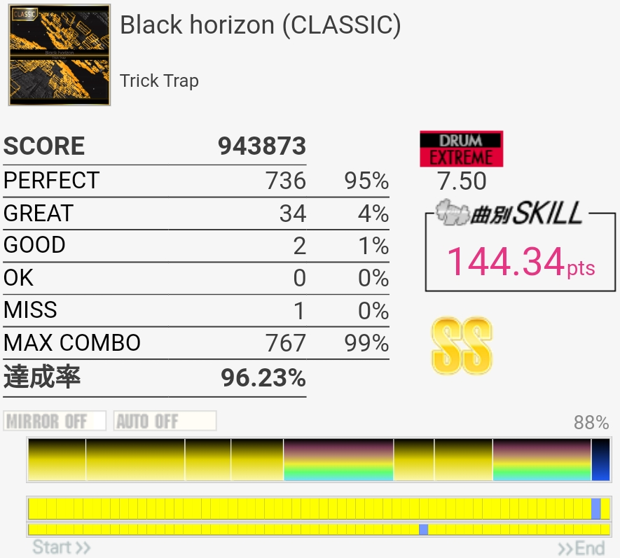 CLASSIC譜面もSS取得。最後のタムなんでMISSになったかわからん。