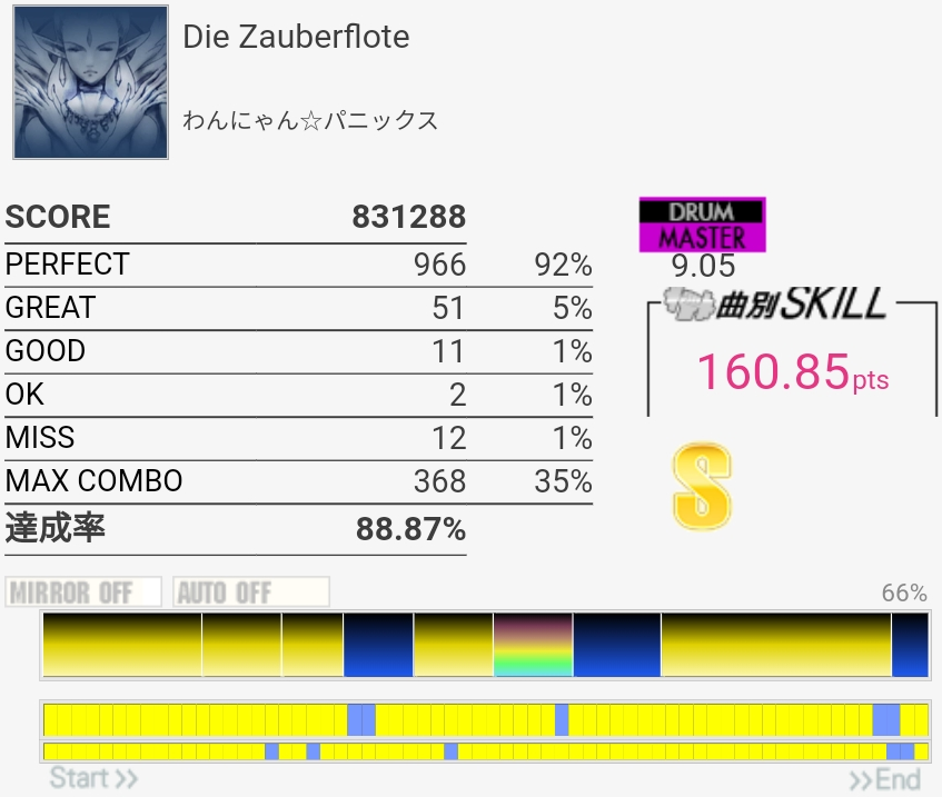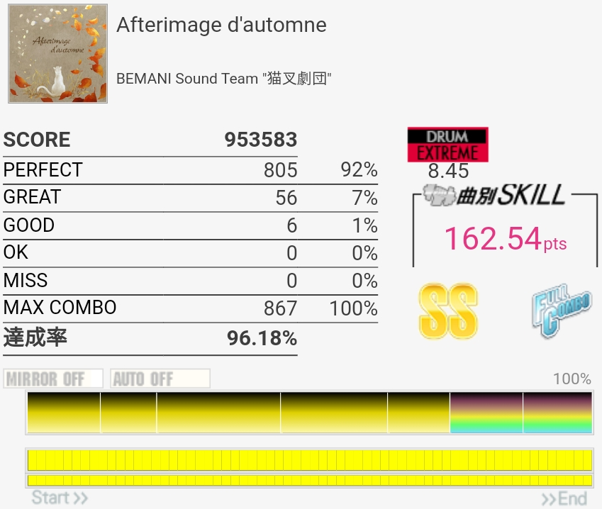 エクセレント!前にやったときは98%とかだったし微妙にBPM遅いの苦手なのでむしろなんでグレ出なかったのかわからん。とりあえずいつ削除されても大丈夫だな!