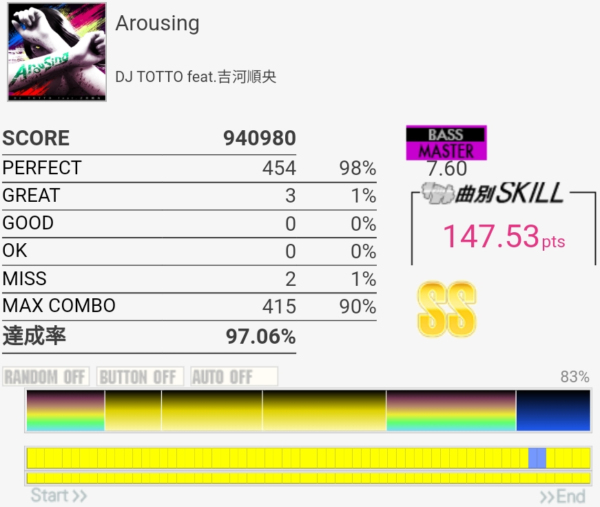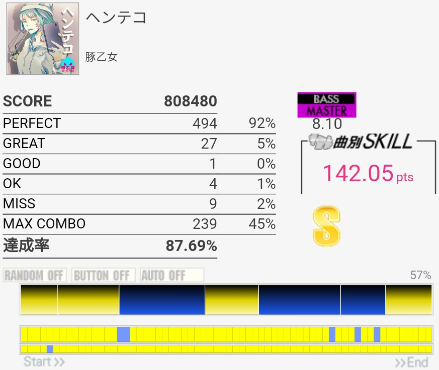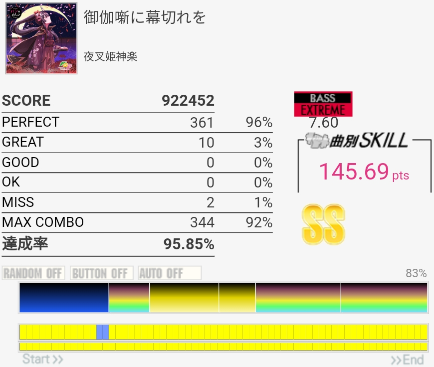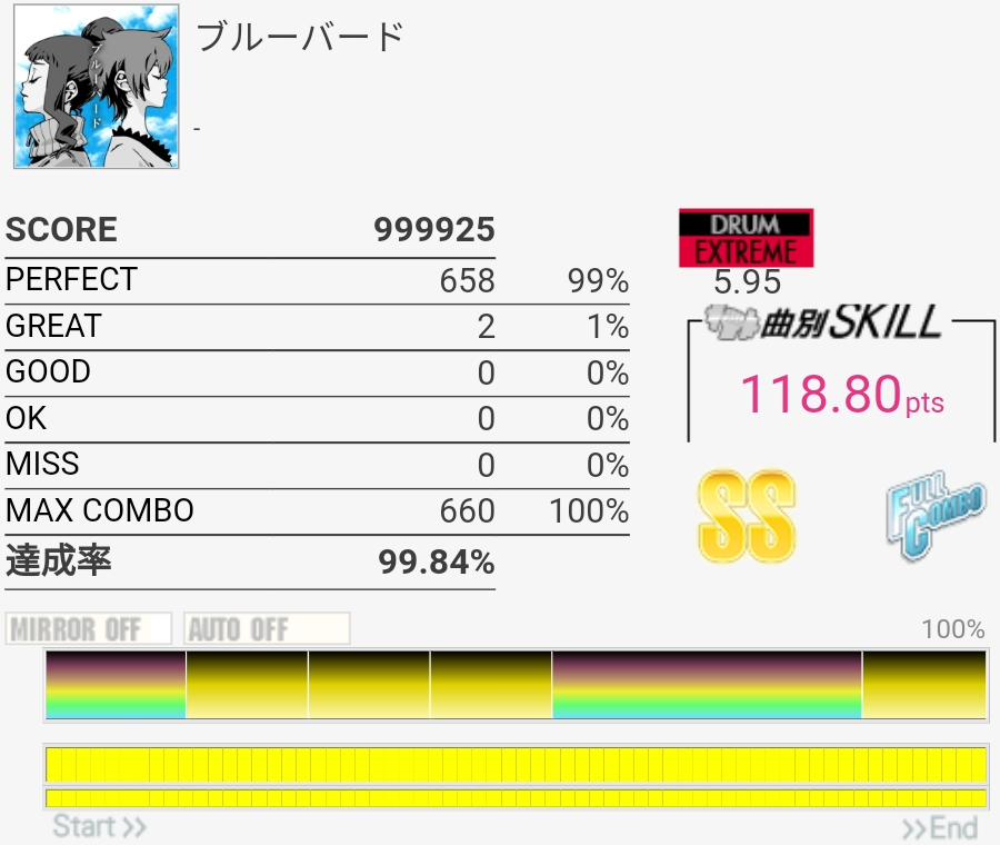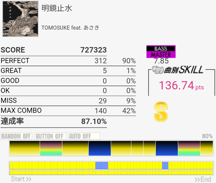 譜面覚えてなかったけどフルコン。GREATが出すぎである。
