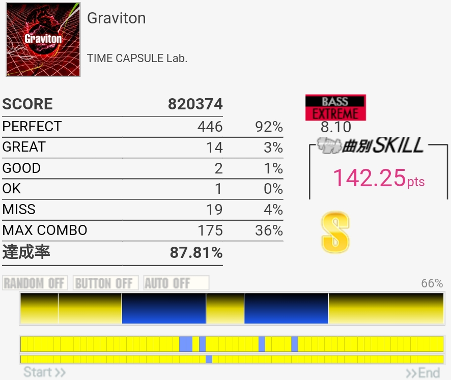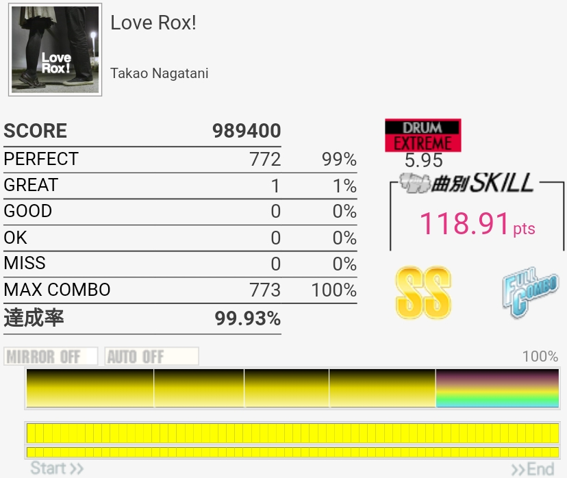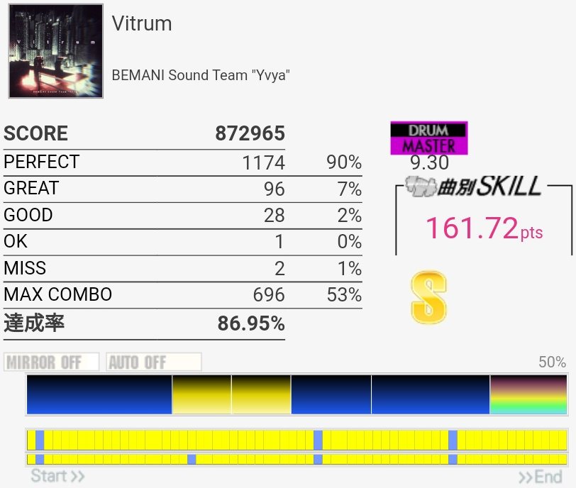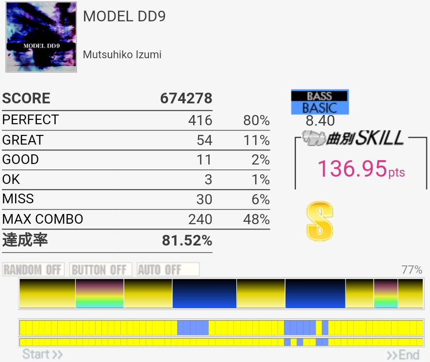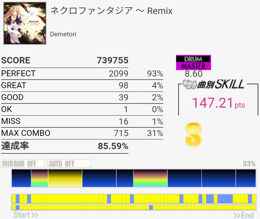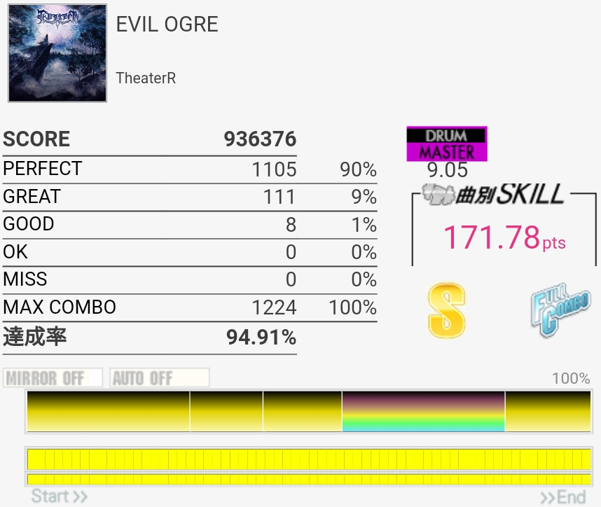 譜面覚えてなかったけどフルコン。GREATが出すぎである。