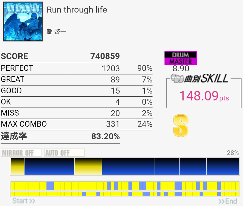 S取得。久しぶりにやったけどこんなやりたい放題やってる譜面だったっけ。