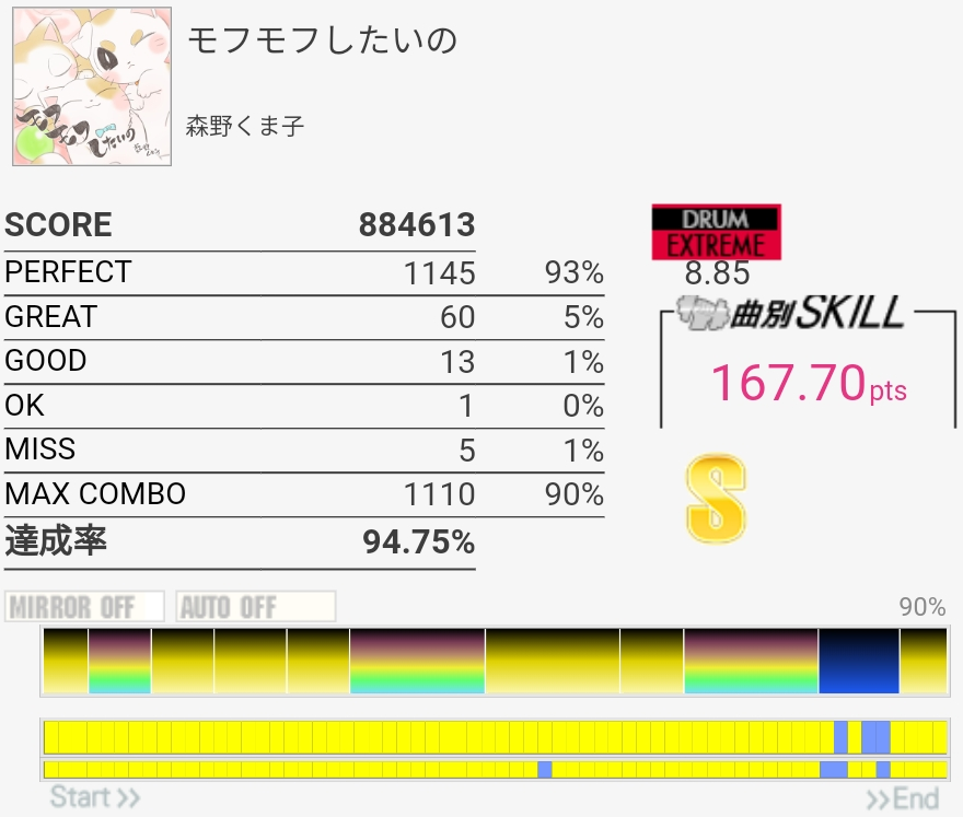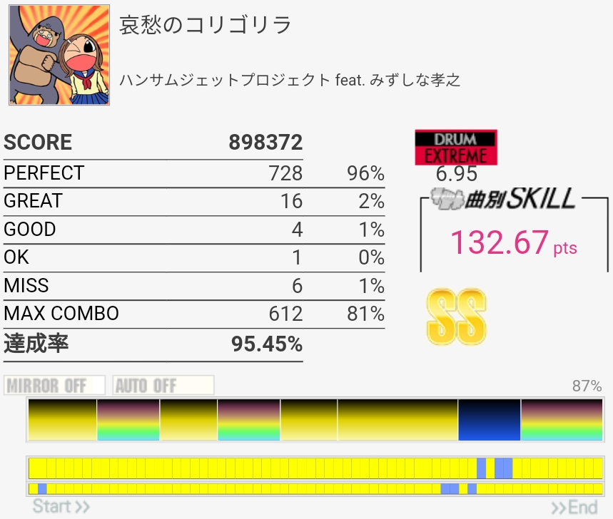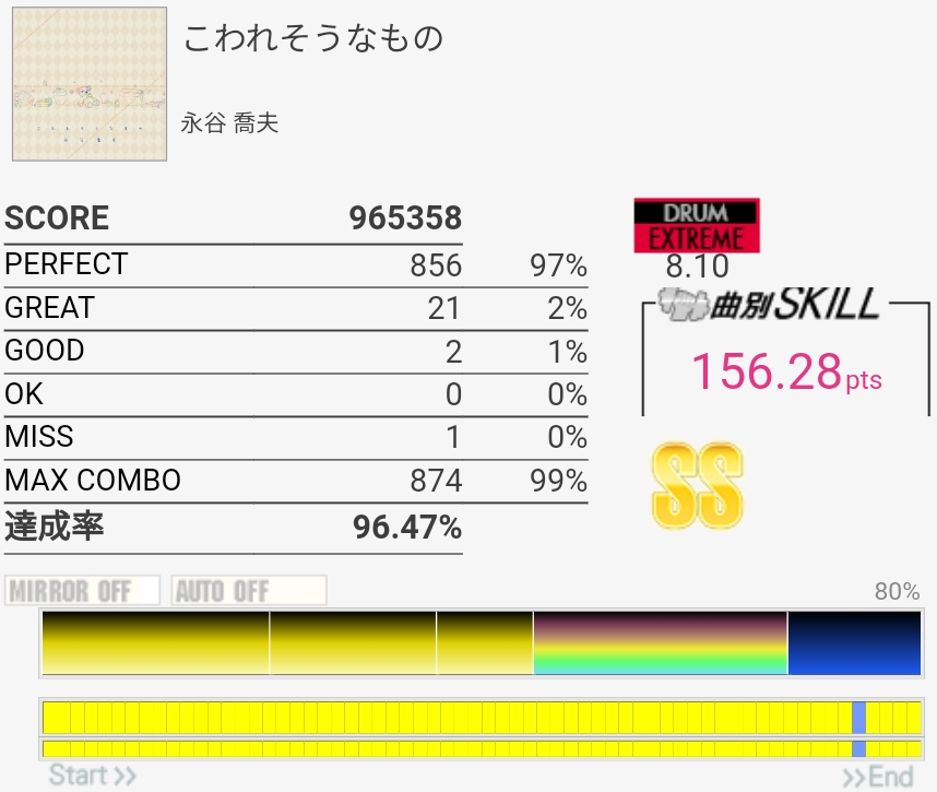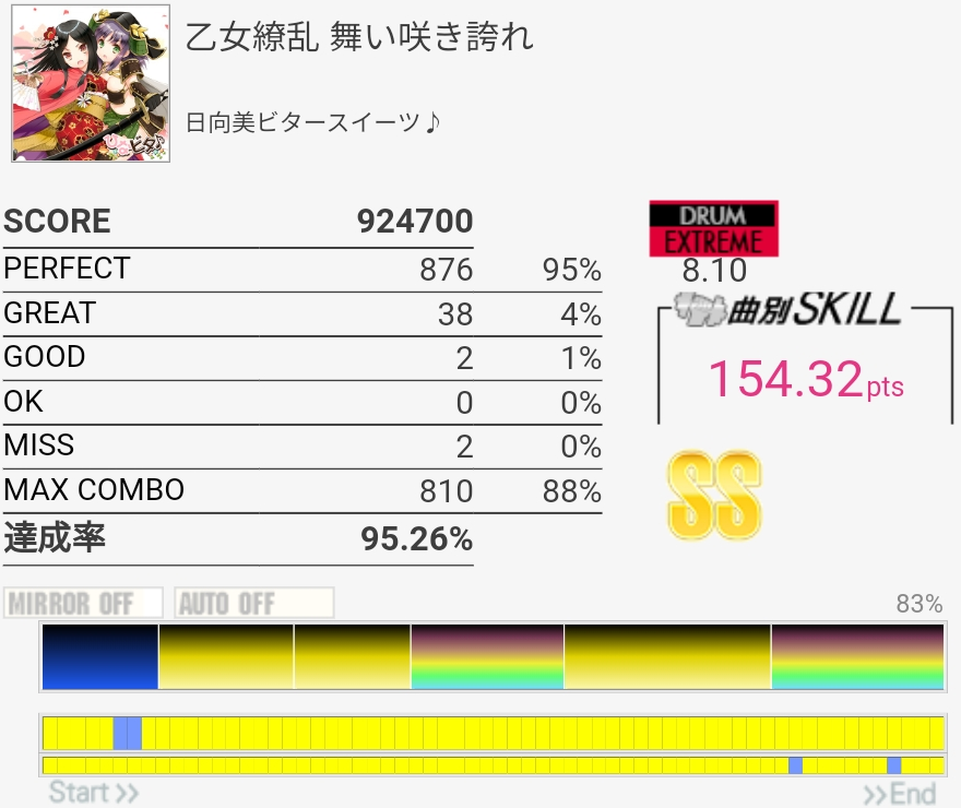 イントロでちょっと崩れたのがなければギリSS乗ってたかも?結局最後が叩けなきゃダメなんだけど……。