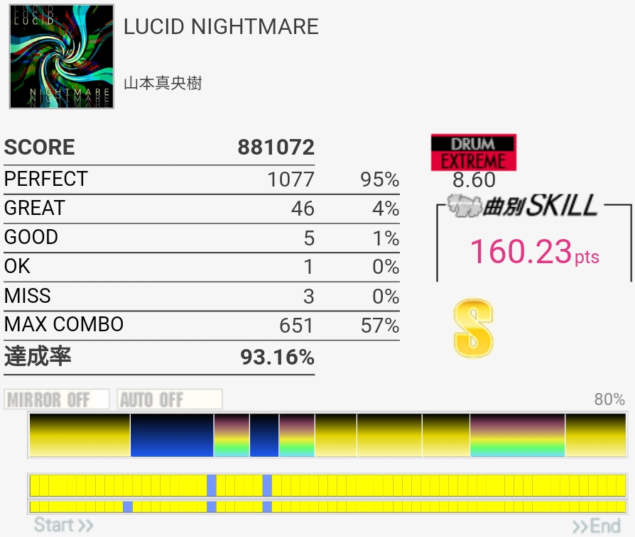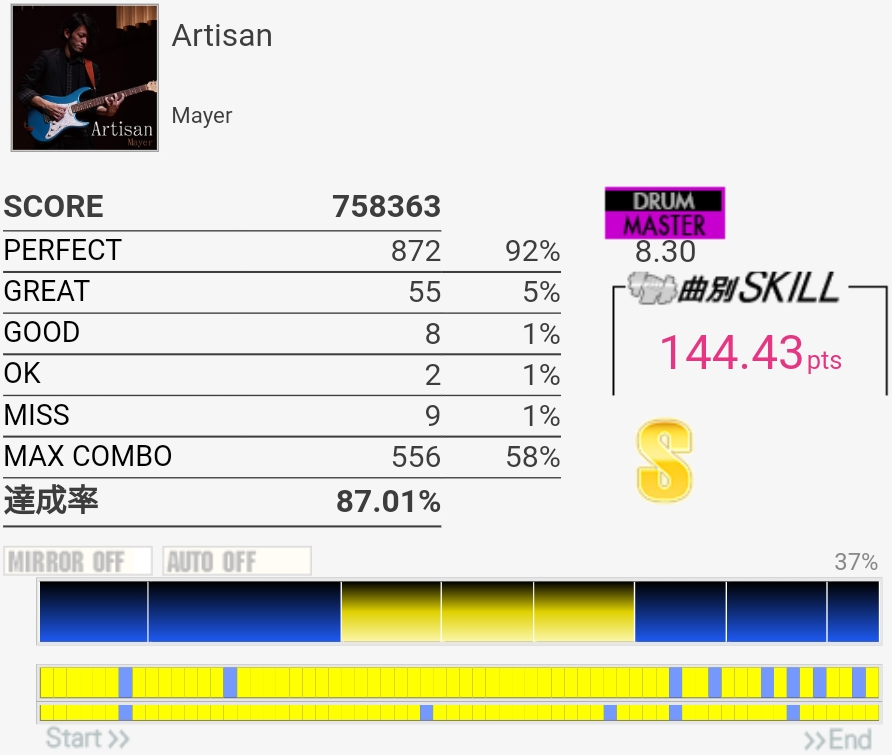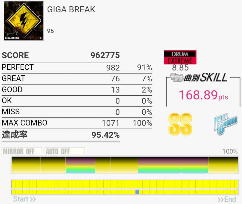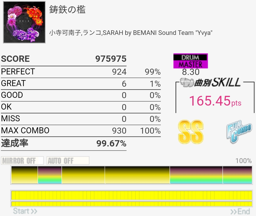 フルコン……パフェ率低すぎ!なんかHHとSNダブルのところで判定が狂いまくってた。でもSS乗ってるから。