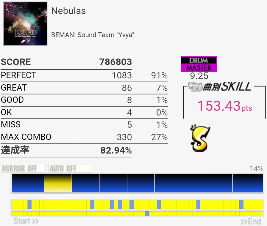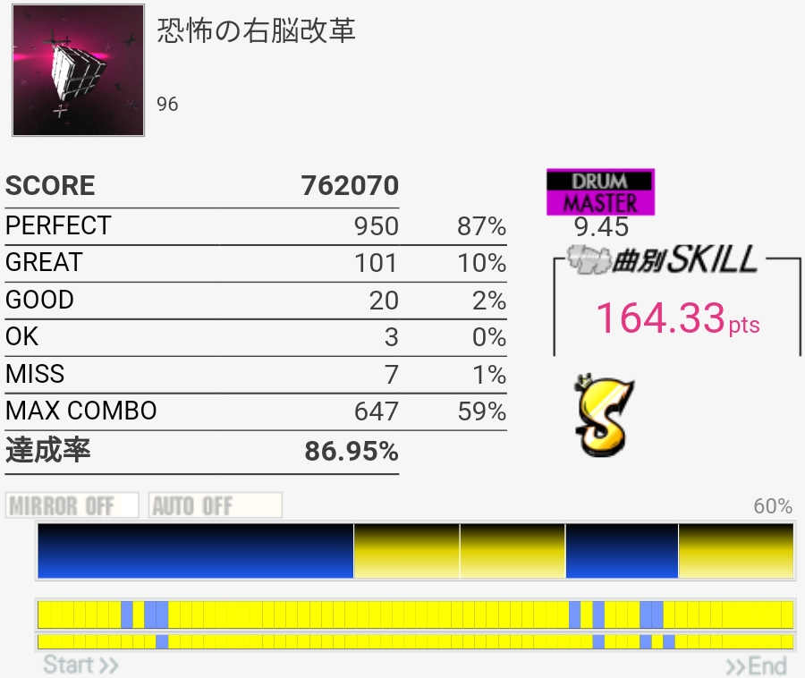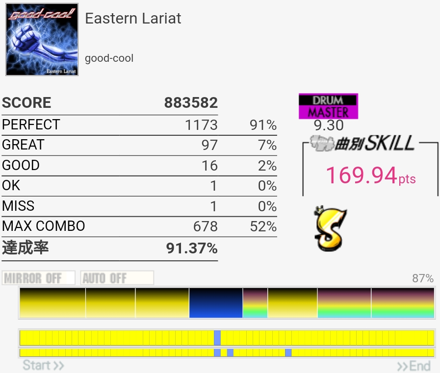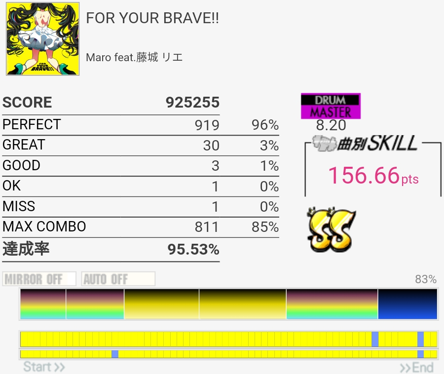 一発目からちょうどいい良譜面で安心。ツーバスしか覚えてなかったので切っちゃった……。