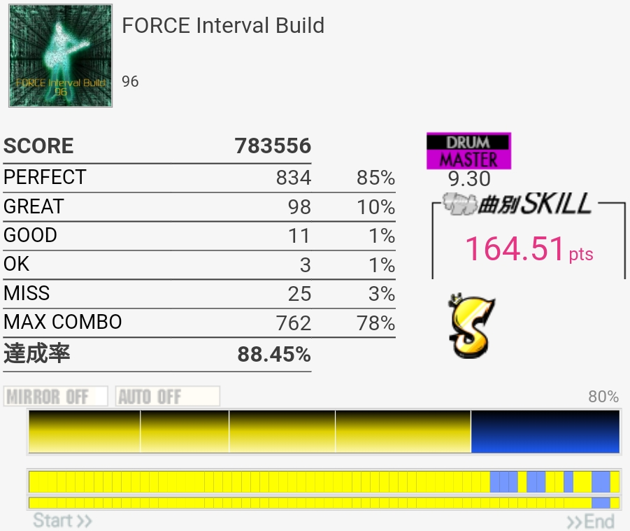 フルコン。イントロ結局覚えてなくてクロスで叩いちゃった。