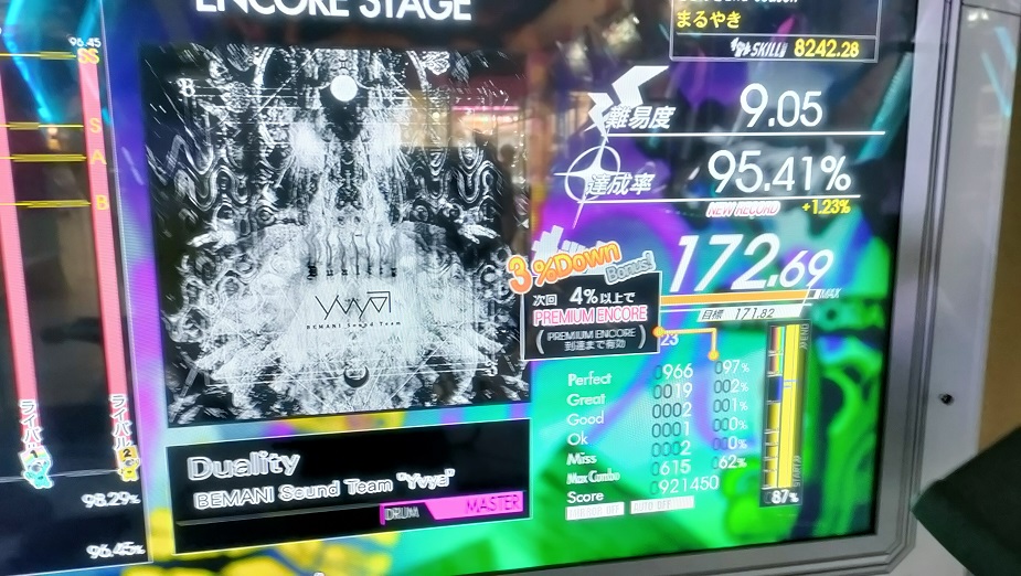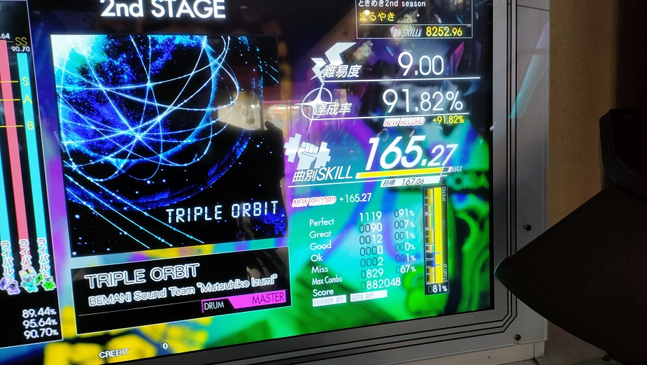 チュウニやmaimaiが入ったりSDVXのVMが4台(!)になった影響でGITADORAの配置が換わってて、壁際になったのはいいけどUFOキャッチャーの反射がものすごい。右半分だけシャッター下ろしてる感じでめちゃくちゃ見づらかった……言って配置換わるかなあ。