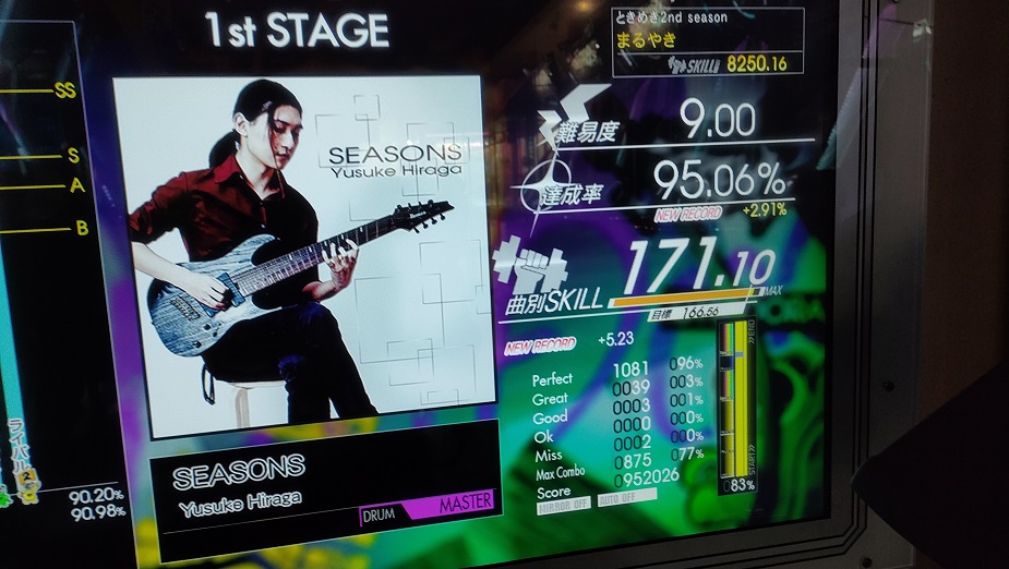 SS取得。やっぱりHH変速のところでミスっちゃうな……曲を全然覚えてない。