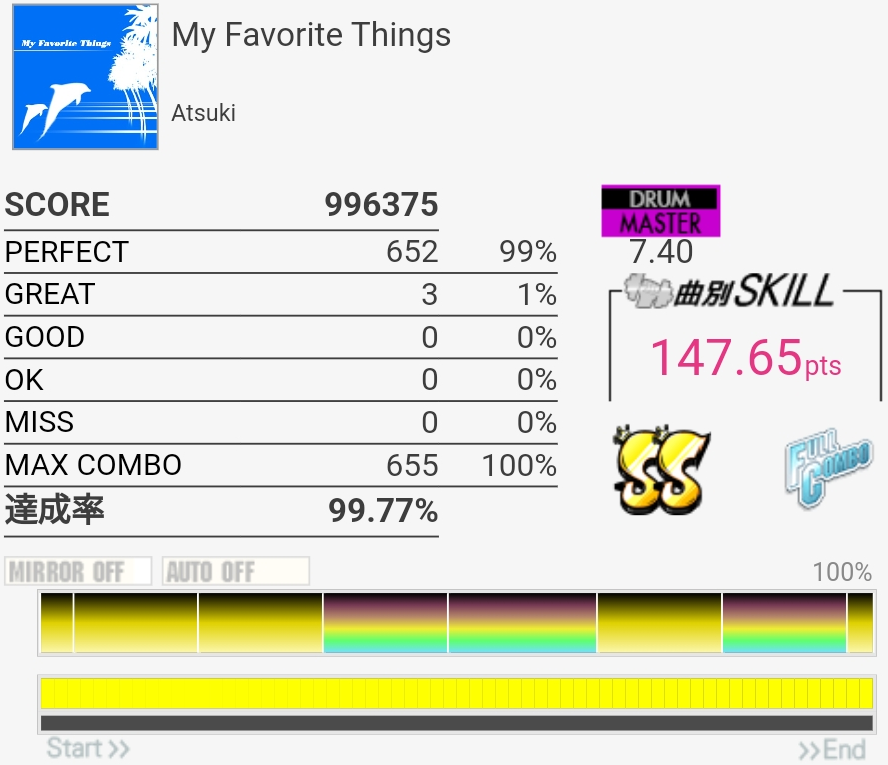 Atsuki曲ってまだあったんだ。めっちゃいい曲だし足の練習譜面にいいね。めちゃめちゃパフェ出やすいからエクセも狙えそう。