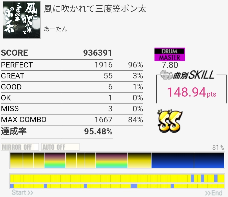 こんなんで160点もらえるなら6フレーズ目繋いでパフェ率ちょっと上げたらワンチャン対象入りしませんかね……?前にも同じようなこと言ってた気がする。