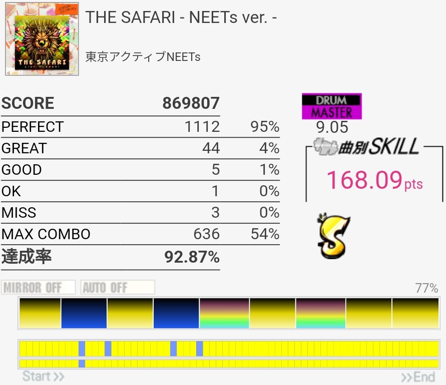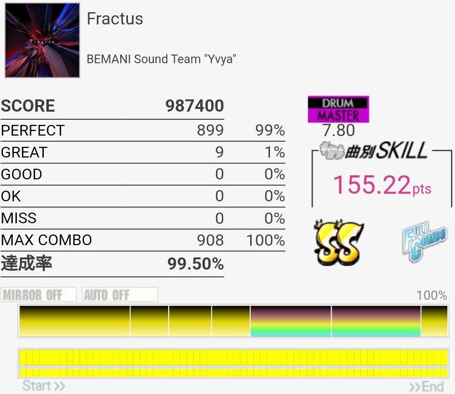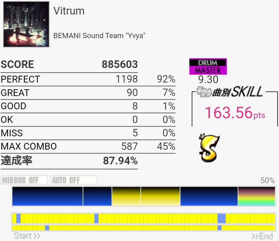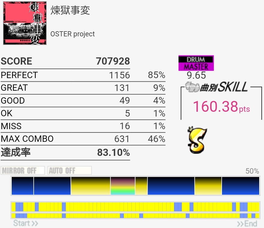 MISSがないので実質フルコンです。そんなわけあるか。とはいえ以前よりキープはできてるってことなので前向きにいきたい。maimaiがうるさくてほぼ目押し状態だったのが逆に良かったのかな。後で気づいたが何気に初Sだった。