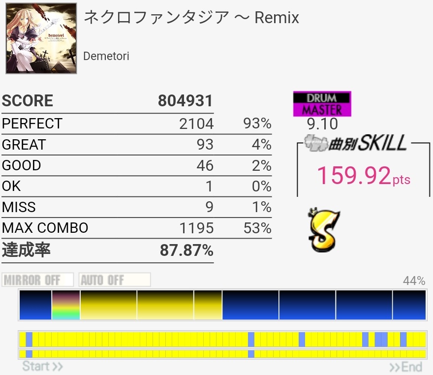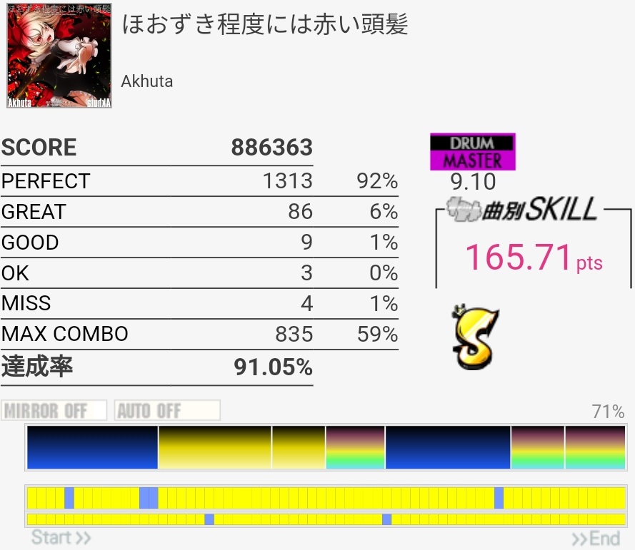 今日はタムの打ち損じが多かった……位置の感覚がズレてるんだよなあ。