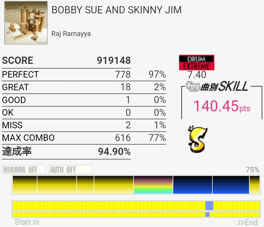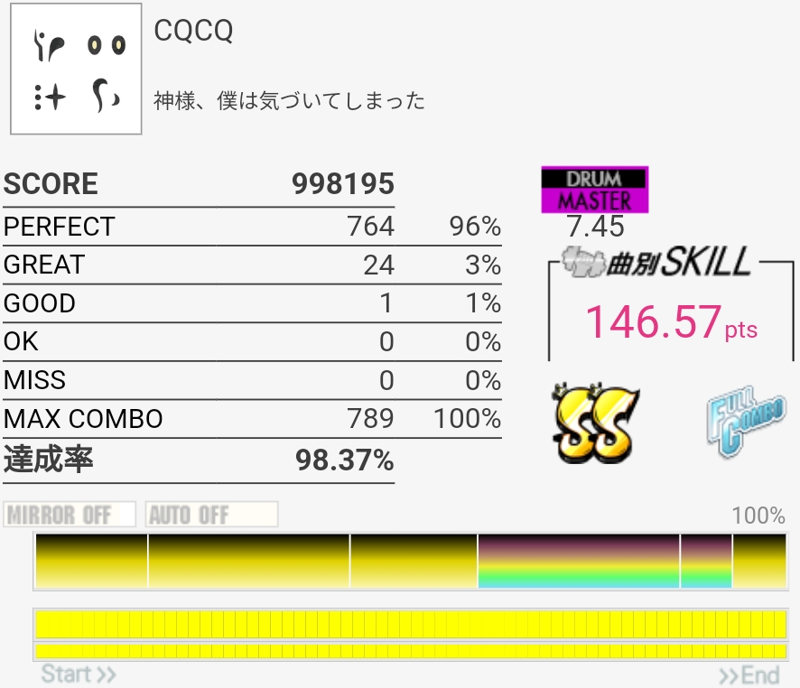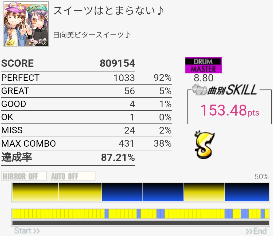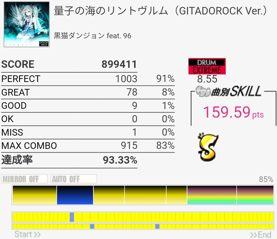 初代らへんの判定ズレてる譜面でこれは結構うまいんじゃないかと思う。音より微妙にノーツ速いよね?