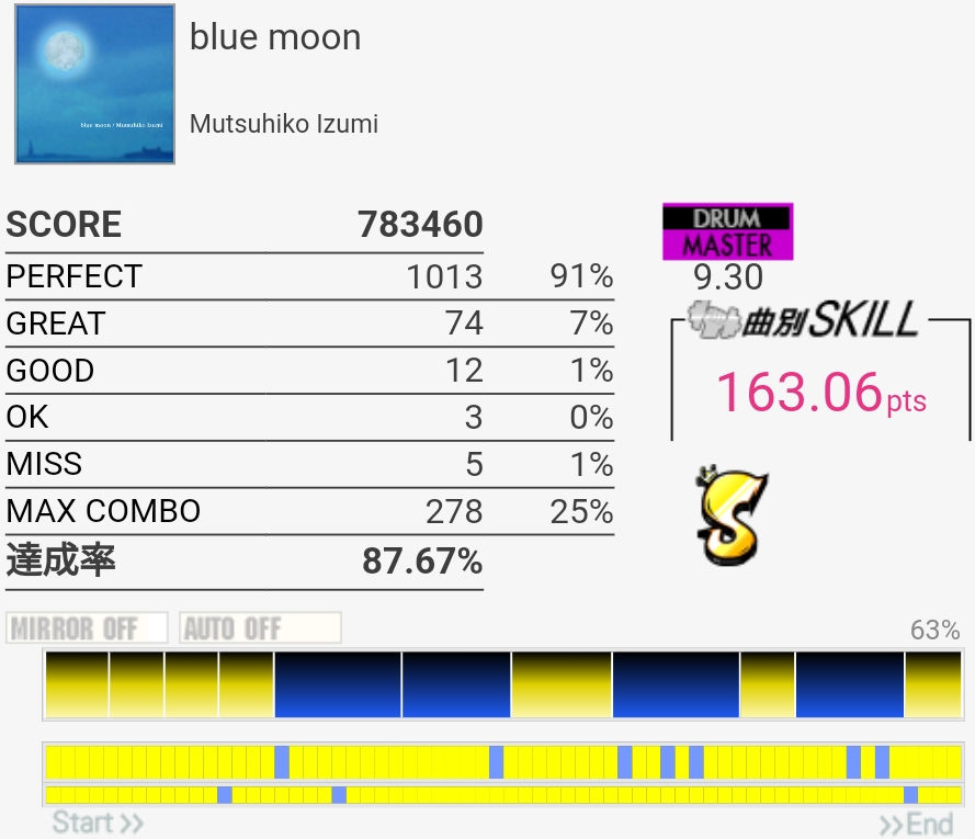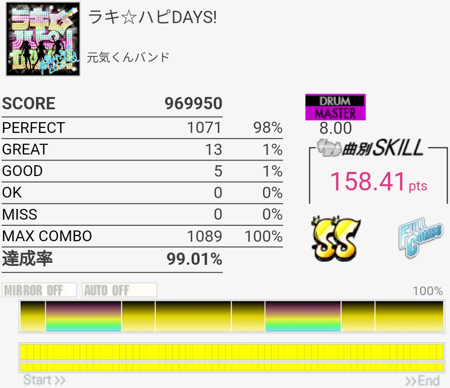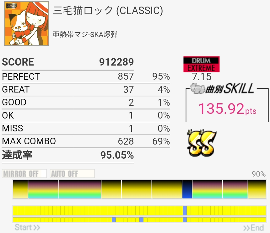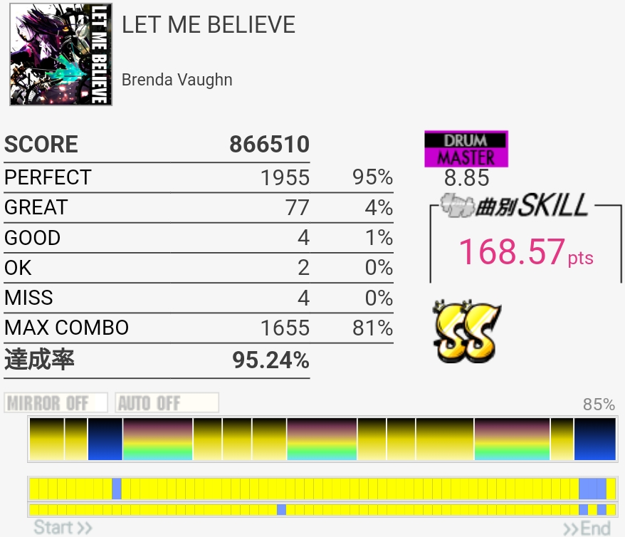 SS取得。テーテレテーテレテッテッのところ叩きづらすぎて嫌い。