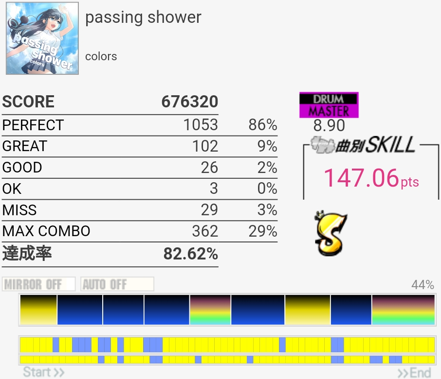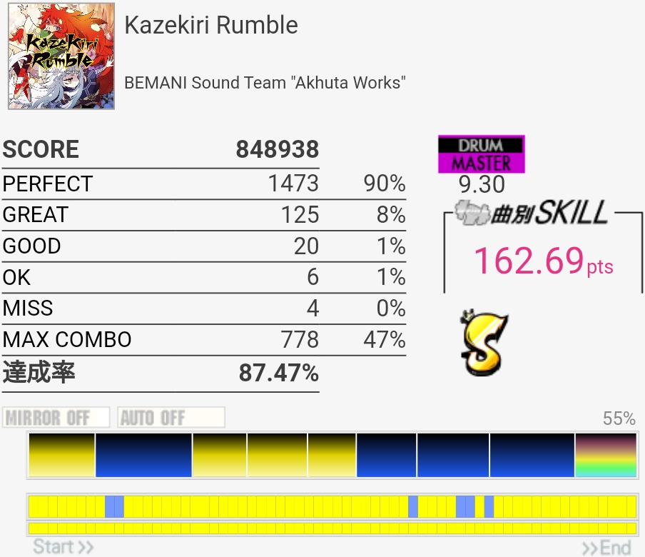 なんかSNとHT叩いてるのに抜けることが多かったけど自分の叩く位置が悪いのかどうか。メンテ良いのが保証されてる状態を知らないからどうしても筐体のせいにしがち。始めたころに比べて性格悪くなったなあと思う。