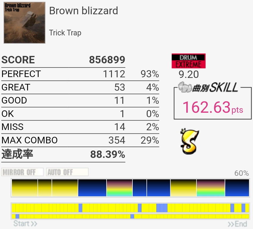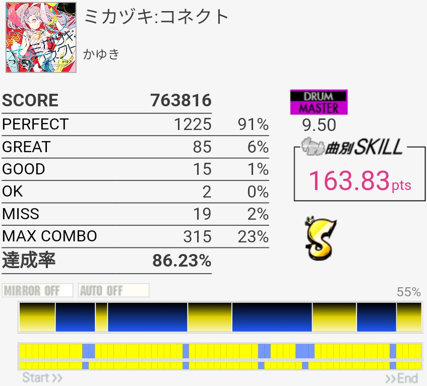 このパフェ率だと最初繋がってても170点すらいかないっすね。そう簡単にはいかないか……。