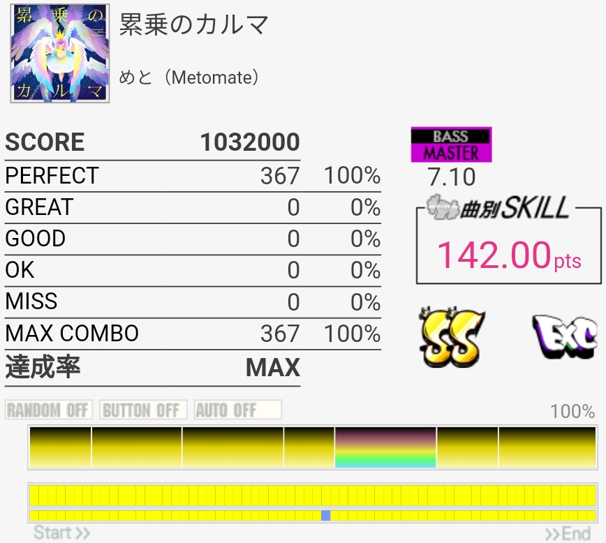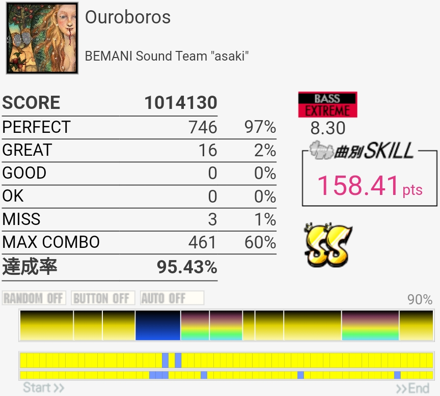 SS取得。速めの4個切り替えオルタが何回も来るけどYから戻るときがめっちゃ怖い。