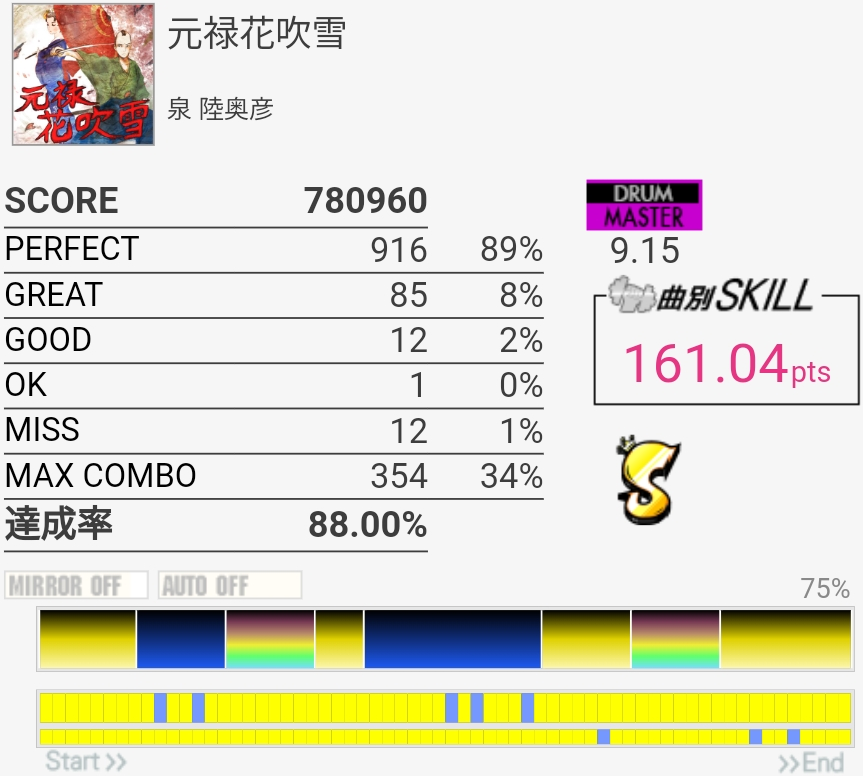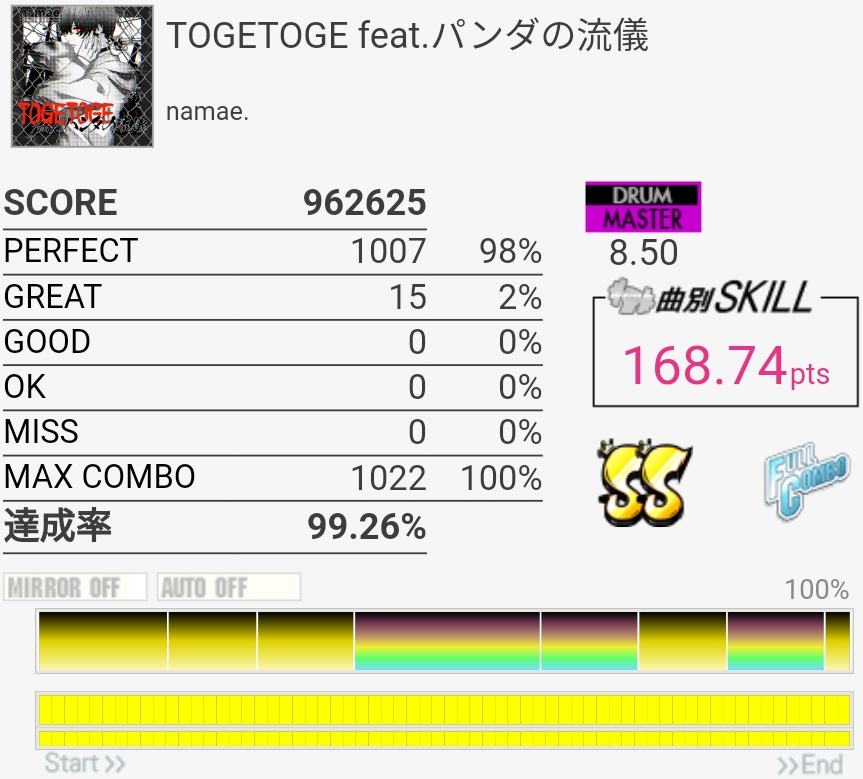久しぶりに繋がった気がする。ドラムソロのところでGOOD出なかったからうまい。