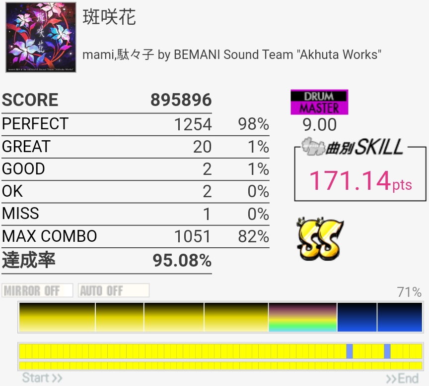 8フレーズ目のHT打ち損じた……でもそこ繋がっててもSS届いてないかな?やっぱりその後のFT絡みをちゃんと叩けるようにしないと。
