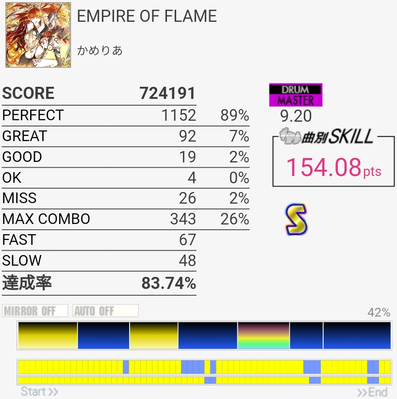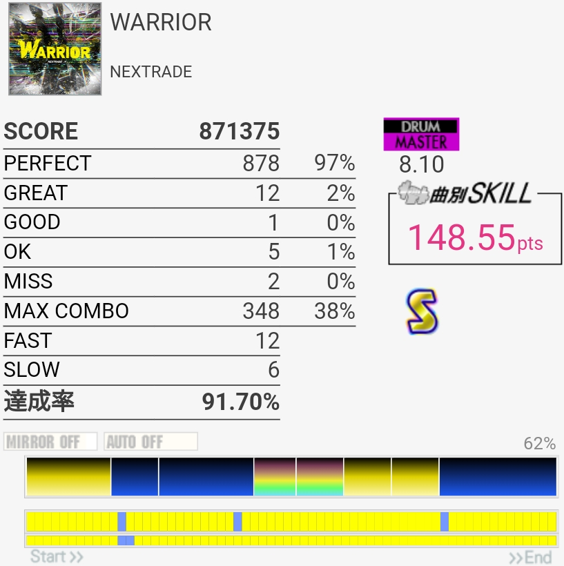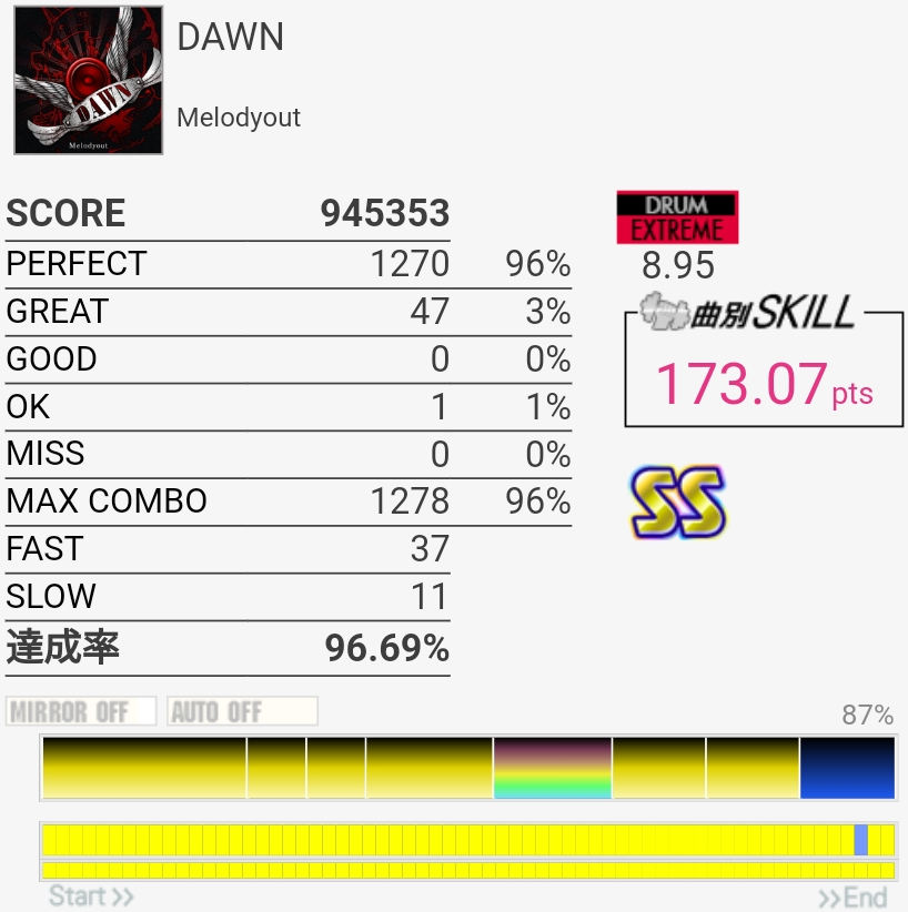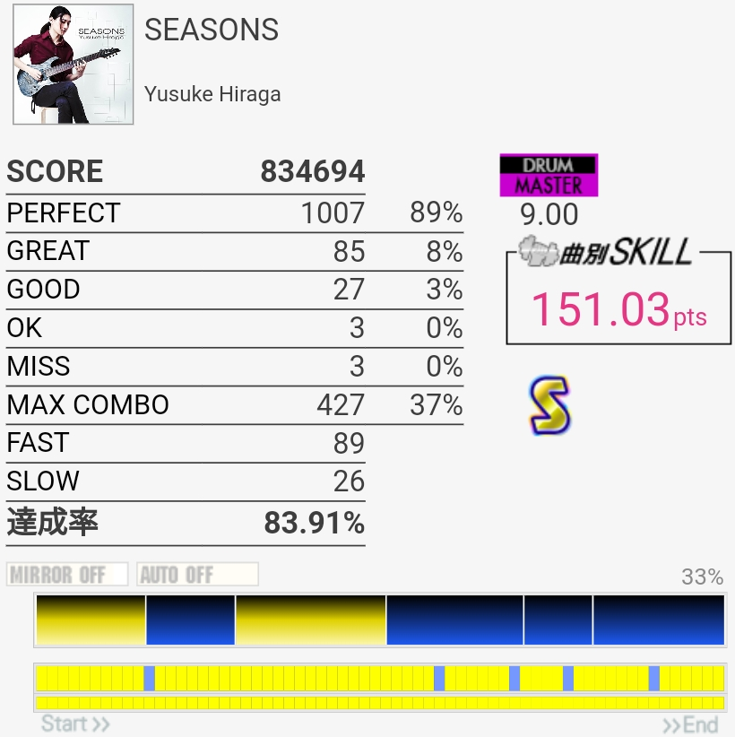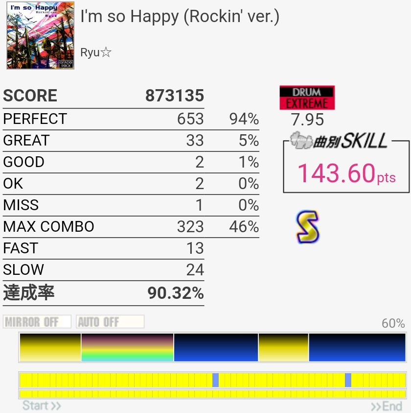 SS取得。やっぱりFT叩くの遅いのかな……パッドの反応はホームのより確実に良かったけど。