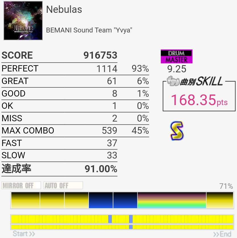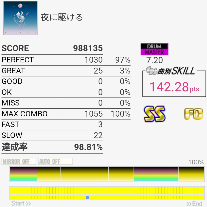毎回イントロか3連CYで切ってたのでSSフルコンは何気に初めて?180点おいしすぎる。
