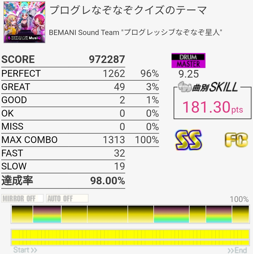 やっとフルコン……なんかサビ後半の簡単なところですらGREAT出まくったのでやり直し希望。