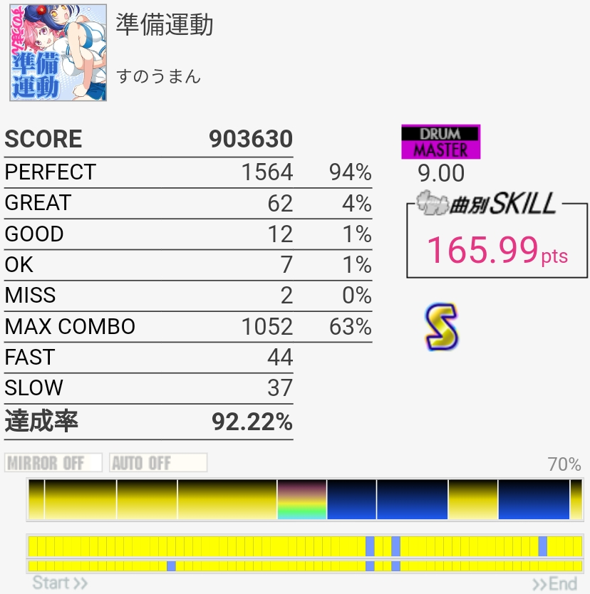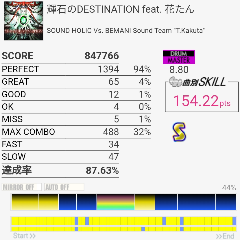 後半もけっこう打ち損じがち……3フレーズ目の変な配置だけ手順決めたらワンチャンあるだろうか。レベル的には繋いでおきたいよね……。