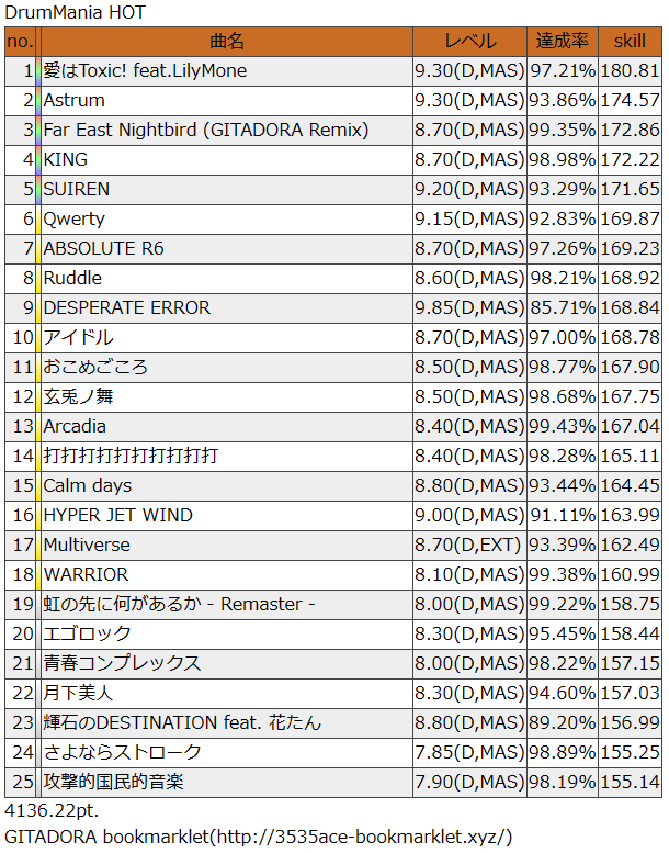 あさきだよね?前2曲のレベルをこっちに分けていいんじゃないでしょうか……連打の絡みがエグいのよ。これは調子よくてもこれ以上伸びるビジョンが見えない。