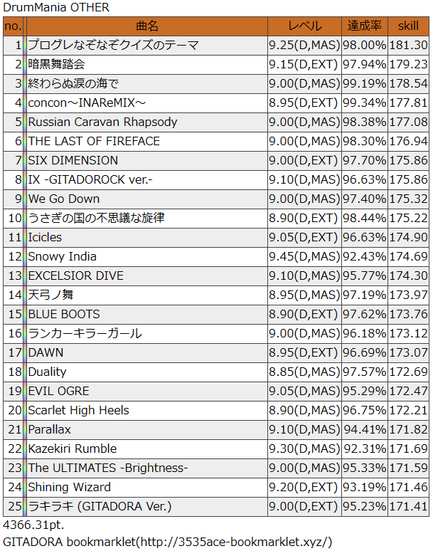 Hot枠もOther枠もけっこうがんばったので見てほしい。今作で新規フルコン・SS取ったやつらがかなり大きいなー。GW終わったらたぶんプレイ頻度というかゲーセンに行ける時間が減ると思うのでほんと4月中にまとめてプレイできてよかった。あと今作は苦手をなくしていこう。