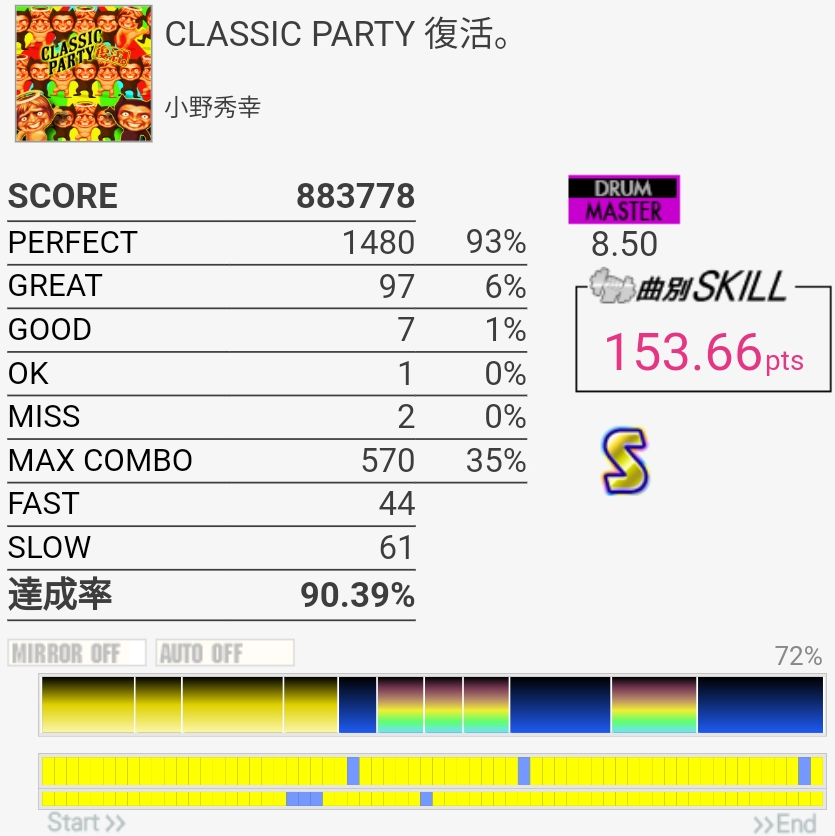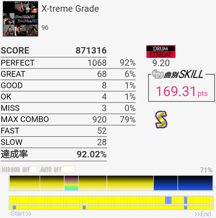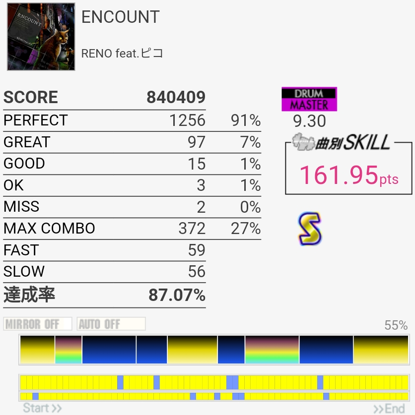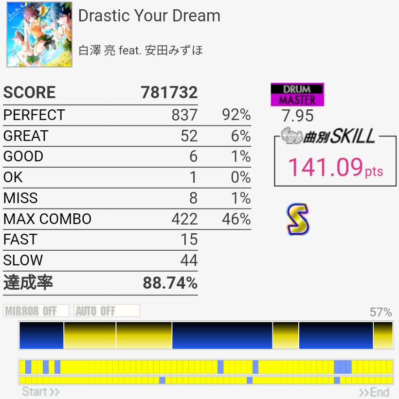 SNかなんかが反応しなかった気がする。ツーバスのところのタム回しと三連符前のHT→LTの追い越しに気を付ければまた対象入れられそうね。