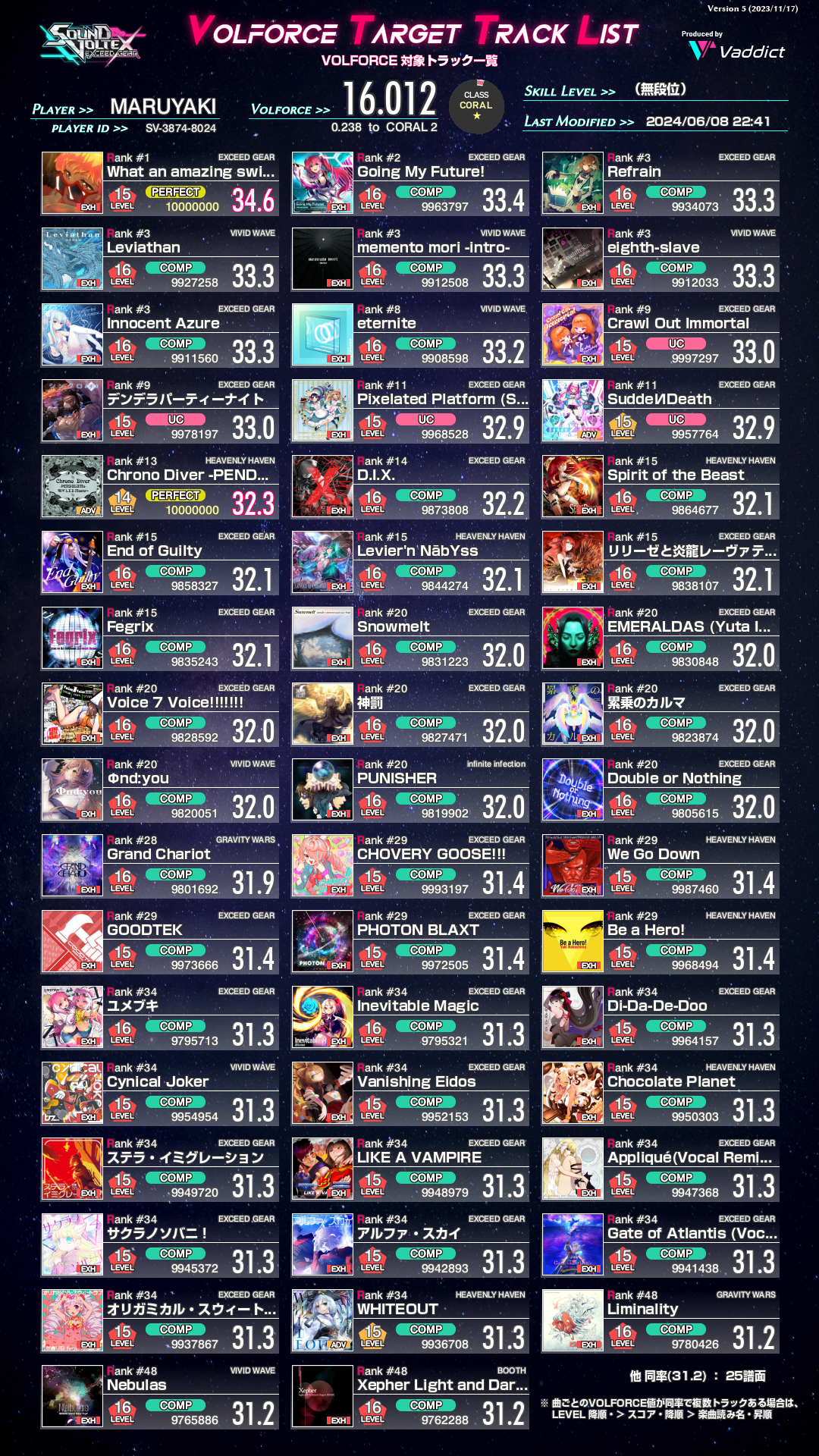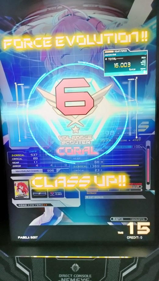 SDVXをちょこちょこがんばってVOLFORCE16まで上がった。GITADORAで言うと赤グラくらい?IIDXだと八段くらい?