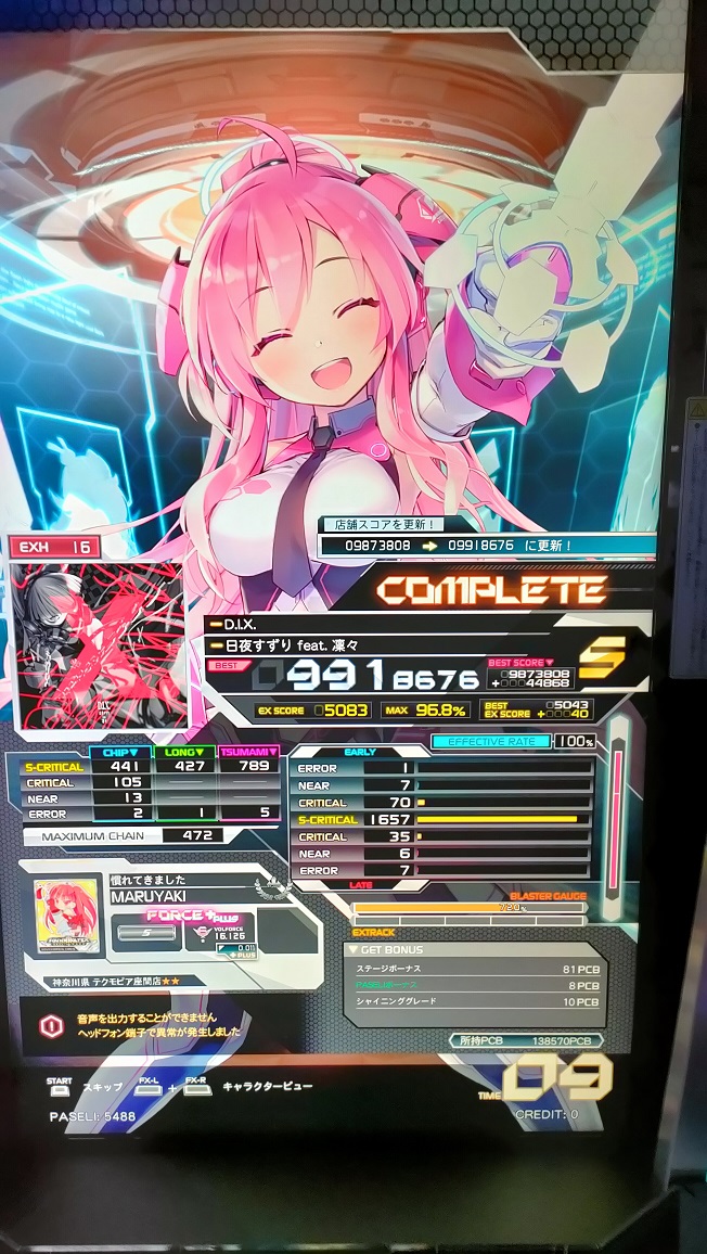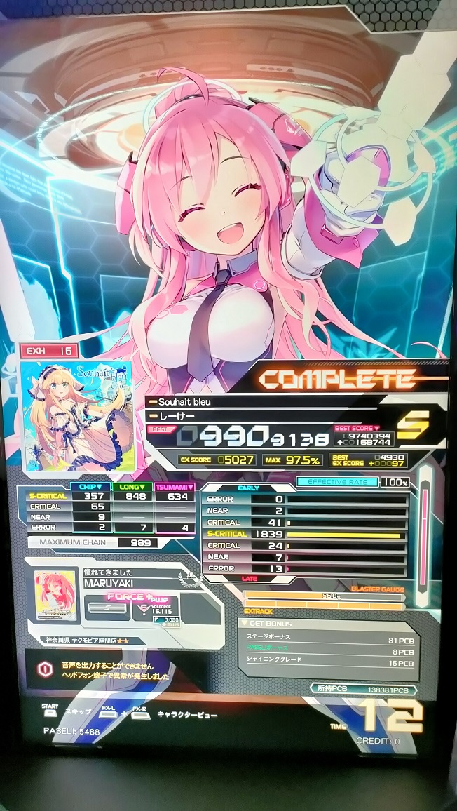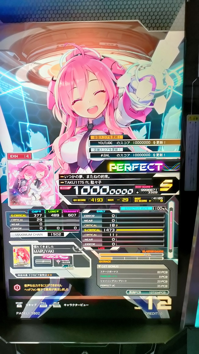 S取得。これも曲が超好きなので嬉しい。低速もっと見切れるようになりたい。
