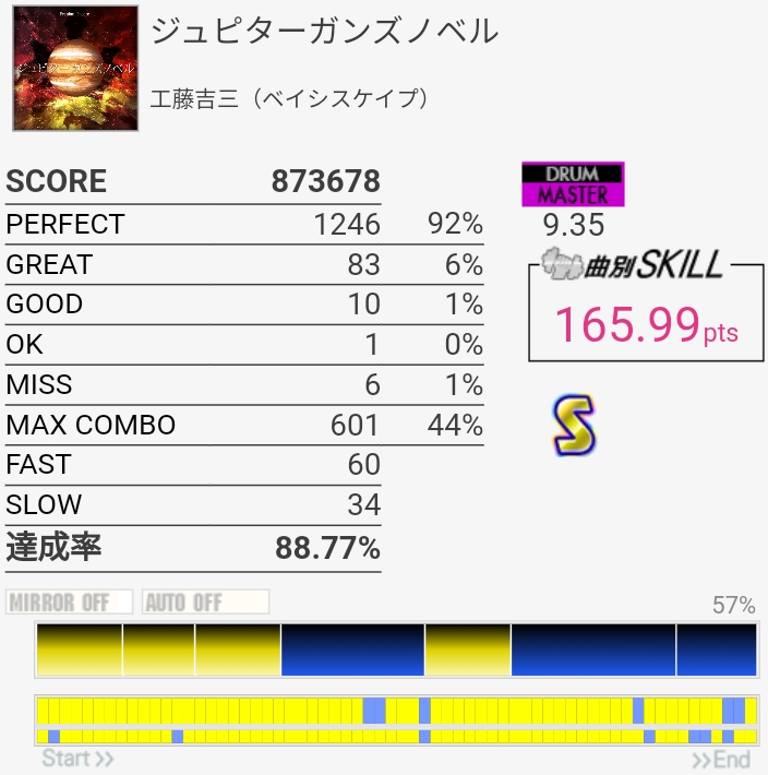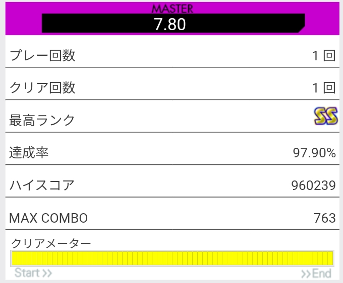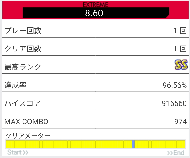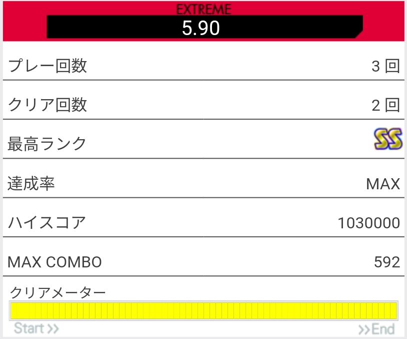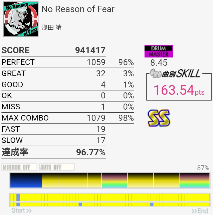 SS取得。今回はイントロ終わりのFT×3で切ったと思う。未だによくわかってない。