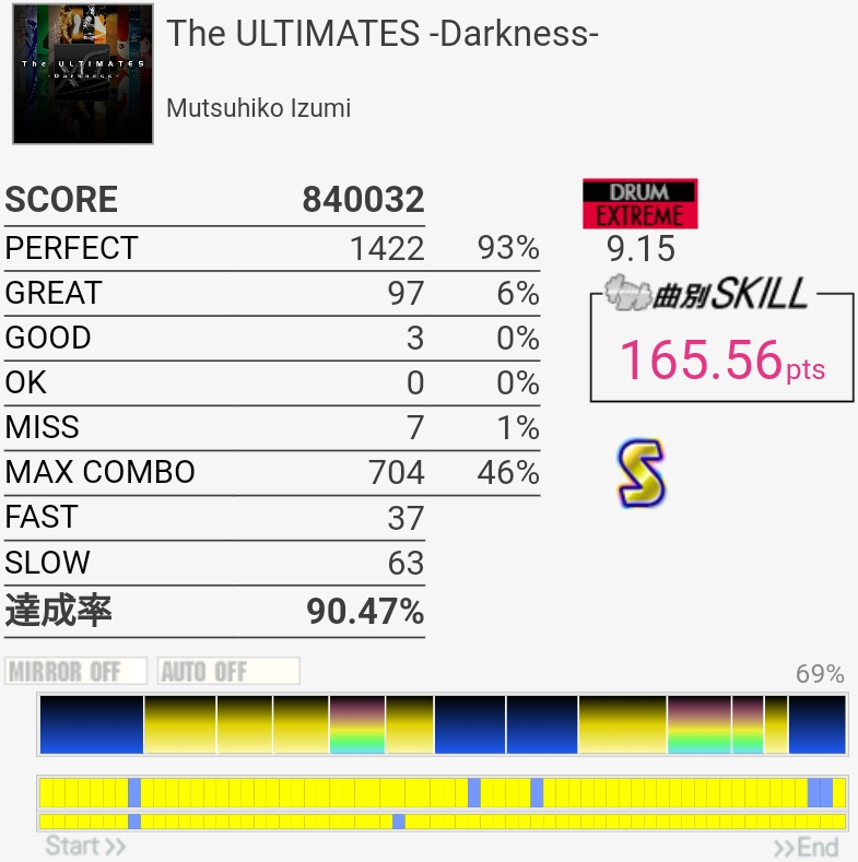 復活を熱望されてた曲なのは知ってる、LPあるかと思ったけどそんなことはなかった。フュージョン特有の半拍ズレてる感のせいでパフェ取るのが難しくて、それに四苦八苦してるとSNの連打に入れなくなる。とはいえ手数が少なめでBPMもそんなに速くないので誤魔化しはききやすいね。今日は腕が動かなかったので後日もうちょいパフェ率上げたい……。